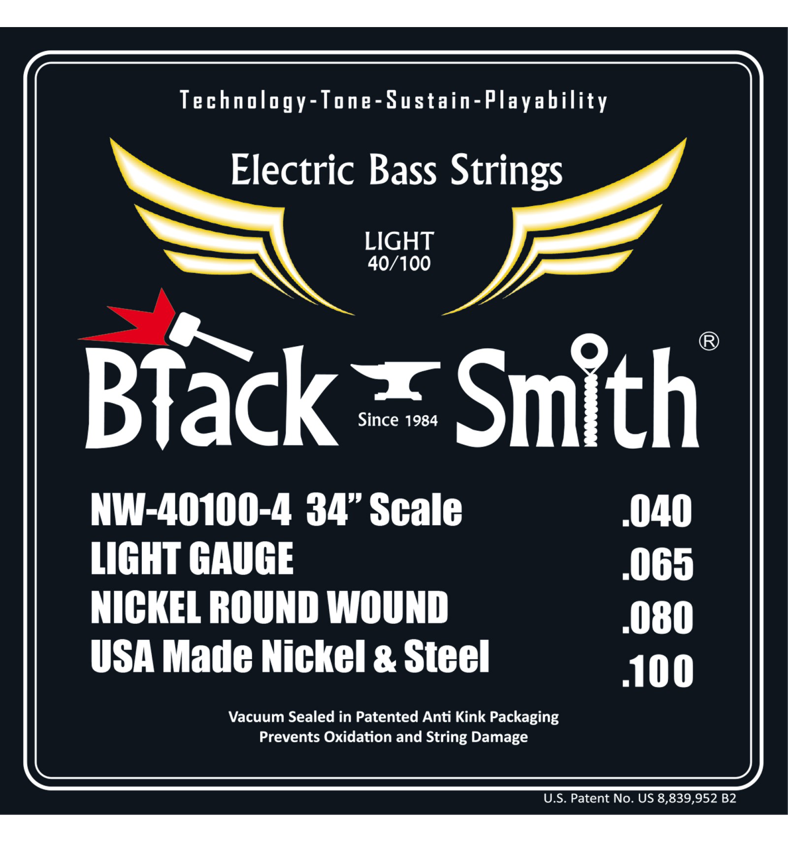 Black Smith Bassgitarren Saiten sind mit der besten Materialien gefertigt und mit state-of-the-art automatische servo gesteuert wicklung ausrüstung. USA Nickel und Stahl sorgt für eine lang anhaltende Saiten mit erhöhter Sustain und extra Hellen Ton. Unserer Proprietären Computer gesteuert wickeltechnik produziert Saiten mit einem sehr konstant Wrap oberfläche und sogar Spannung, genaue Intonation, und überlegene Spielbarkeit.