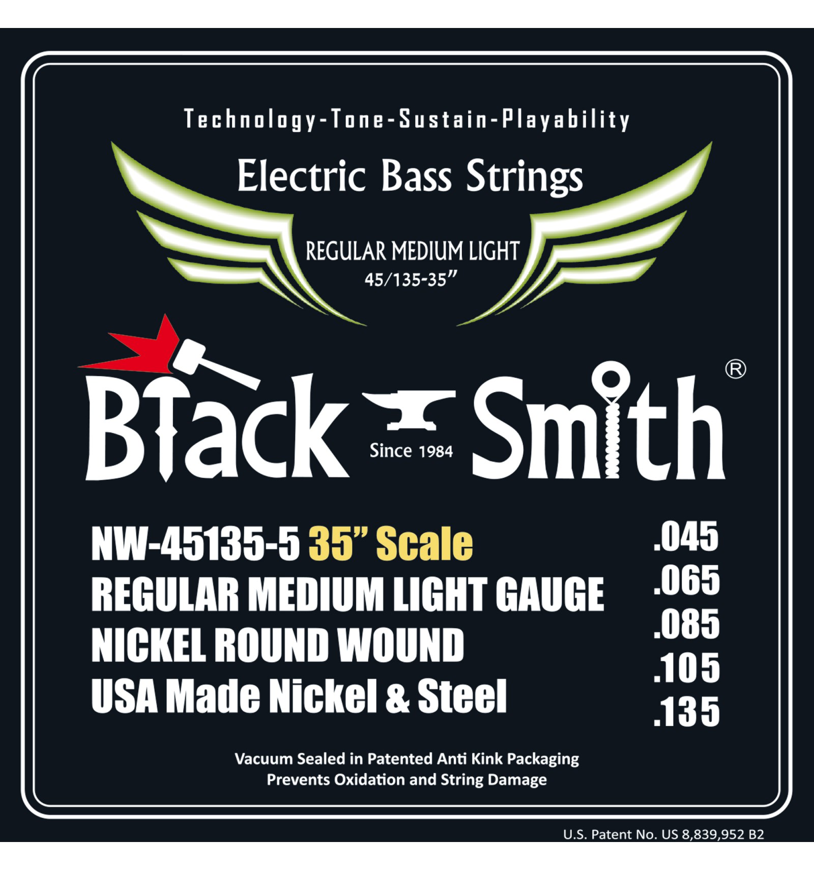 Black Smith Bassgitarren Saiten sind mit der besten Materialien gefertigt und mit state-of-the-art automatische servo gesteuert wicklung ausrüstung. USA Nickel und Stahl sorgt für eine lang anhaltende Saiten mit erhöhter Sustain und extra Hellen Ton. Unserer Proprietären Computer gesteuert wickeltechnik produziert Saiten mit einem sehr konstant Wrap oberfläche und sogar Spannung, genaue Intonation, und überlegene Spielbarkeit.