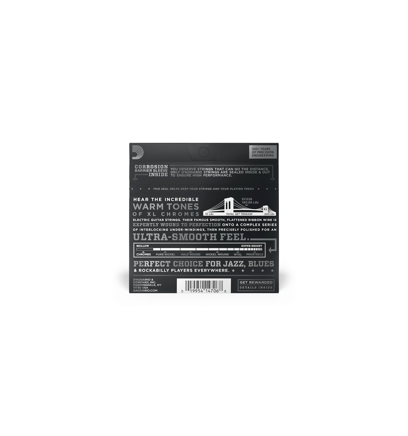 Les D'Addario filé chrome sont caractéristiques par leur filage plat en Acier inoxydable stainless stell qui leur donnent cette sonorité très chaude avec une attaque douce, idéale pour le jazz.