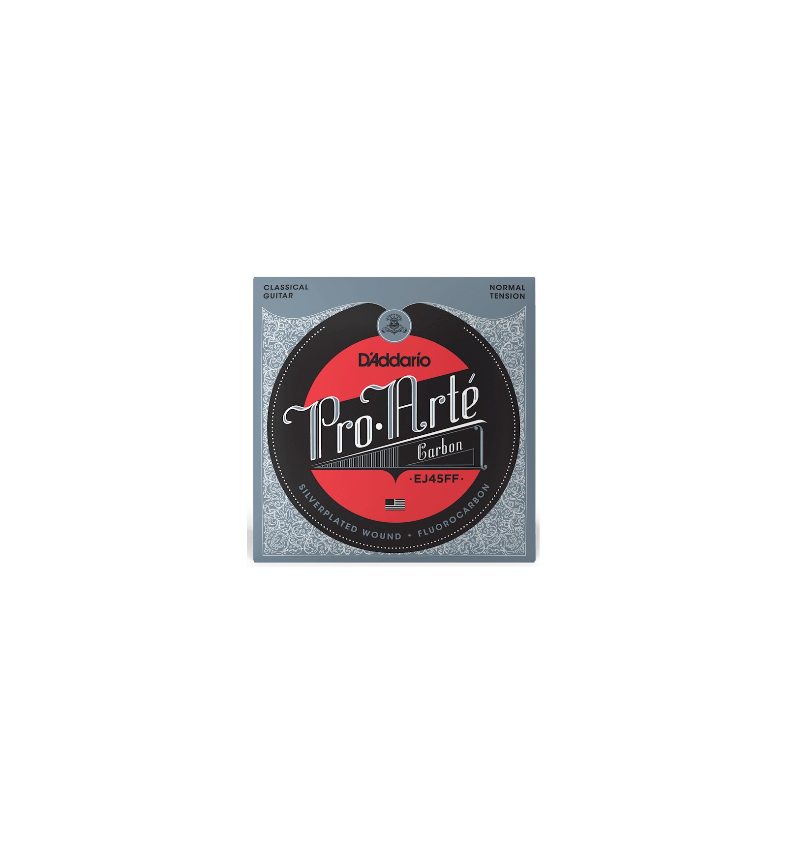 EJ45FF, normal tension, features Pro-Arté Carbon trebles and Dynacore basses for unsurpassed superior intonation with the perfect blend of tone, brightness, and projection. Paired with the bold and powerful Dynacore basses, Pro-Arté Carbons offer the ideal combination of tension and tone for today’s classical player.