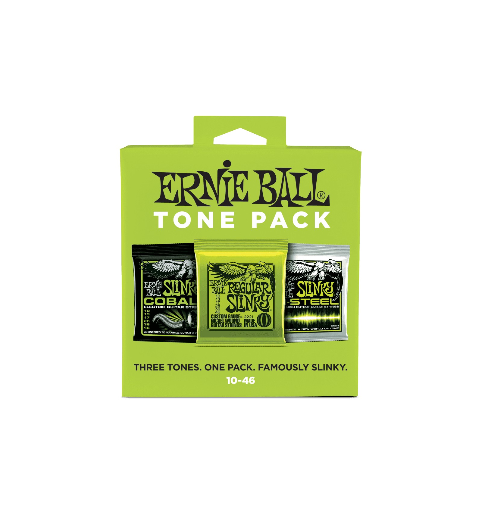 Das Ernie Ball Electric Guitar Strings Tone Pack ist perfekt dazu geeignet, gleich drei legendäre E-Gitarrensounds zu erleben. Die weltweit meistverkauften Original Slinky Saiten bieten einen klassischen, ausgewogenen Ton, Cobalt Slinky Saiten liefern mehr Lautstärke und eine herausragende Transparenz, und die M-Steel Slinky Saiten sind die lautesten und ausdrucksstärksten Saiten überhaupt. Drei Sounds. Ein Pack. Famously Slinky.