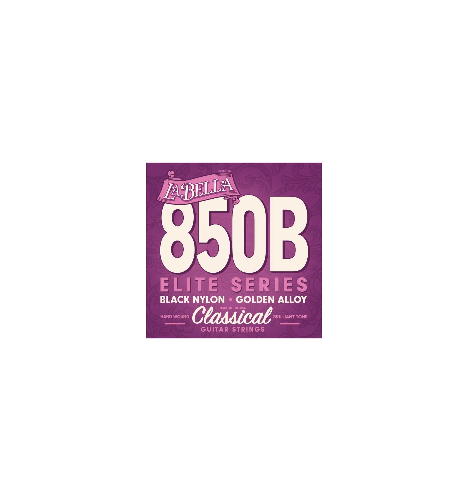 The 850B sets include black nylon trebles and Golden Alloy basses. These strings will produce purer treble tones and higher overtones on the bass strings.