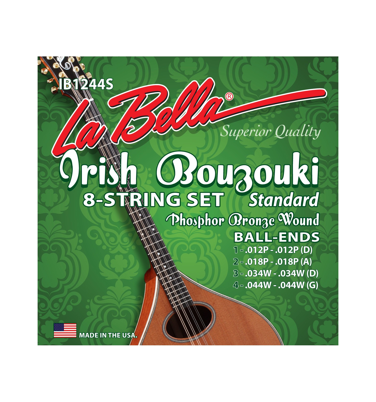 The La Bella Irish Bouzouki strings are the finest available for the demanding rigors of the 25.5" scale length, unison tuned authentic instrument. Perfectly balanced and carefully gauged, these strings are the result of persistent research and consultation with today’s best international Irish Bouzouki players. You will enjoy the long lasting power and fidelity of these strings endorsed by both players and builders of fine hand crafted Irish Bouzoukis.