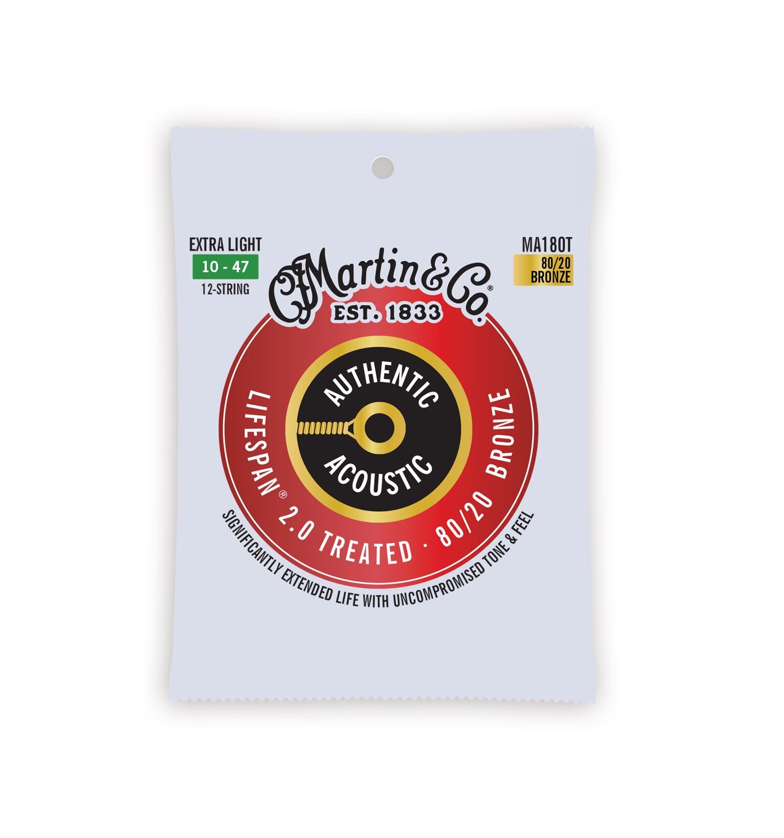 Martin’s next generation Lifespan 2.0 strings are engineered using a new, patented technology only available from Martin. This technology was developed to protect the core wire and the wrap wire to prevent corrosion without compromising tone – the single most important attribute of the guitar strings. Authentic Acoustic Lifespan 2.0 strings look better, sound better, and feel better, providing a smooth playing experience that reduces finger drag. We invested two years developing our next generation Lifespan 2.0 strings to ensure they will sound better, longer than any other extended-life string on the market. Available in 80/20 Bronze and 92/8 Phosphor Bronze.