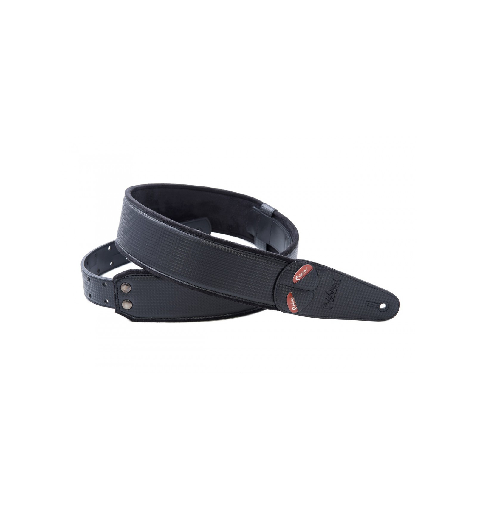 La Carbon es una espectacular correa realizada con un material que imita visualmente el carbono. Es sencilla y elegante, no llama la atención a lo lejos, pero de cerca su textura sorprende a todo aquel que la toca. Te resultará difícil dejar de tocarla a ella y centrarte en tu guitarra o bajo.