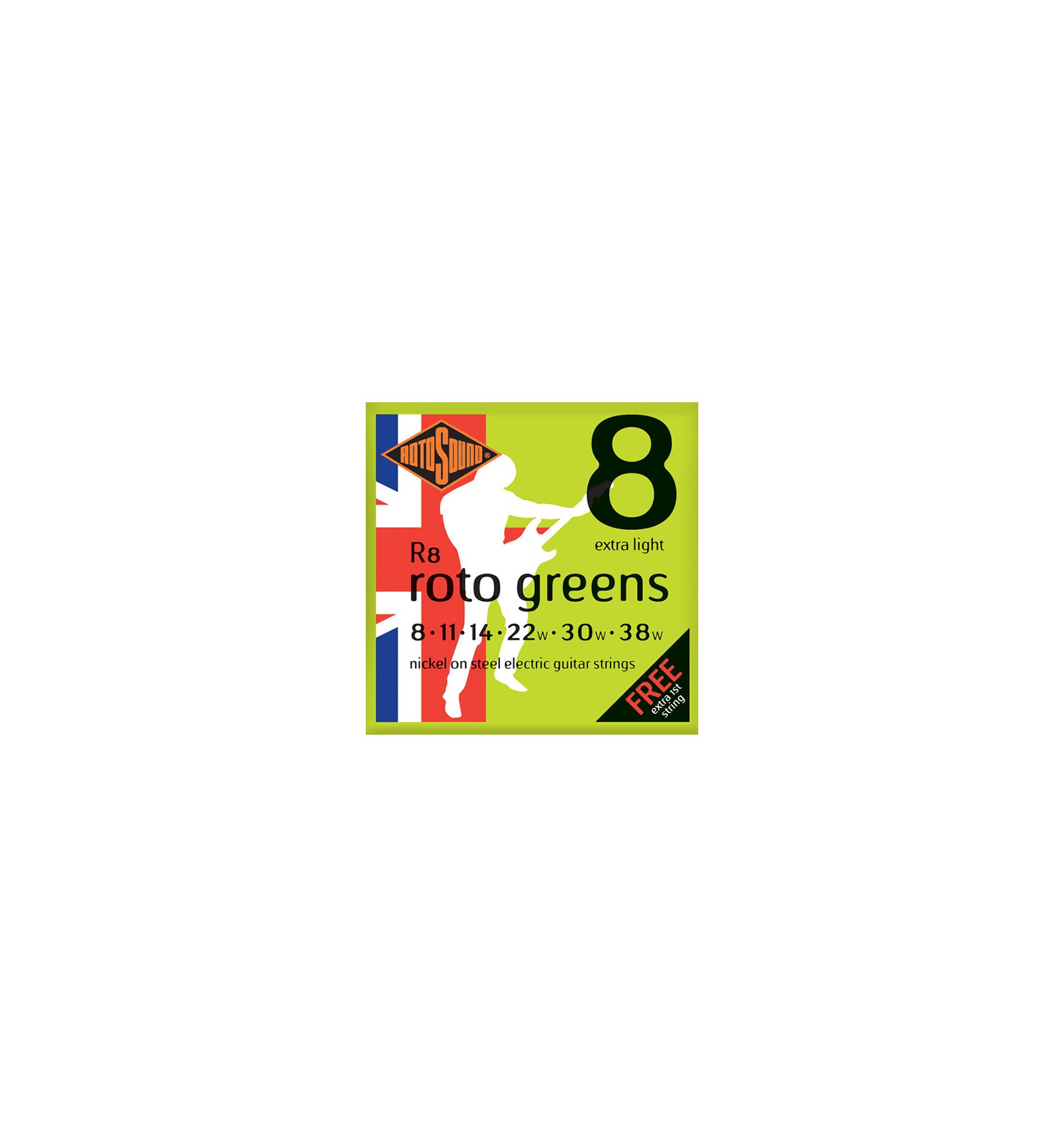 Rotosound R8 Roto grau Nickel Plated Strings sind eine Reihe von Premiumqualität British gemacht e-Gitarre, die Saiten, die unschlagbaren Angebot aufrechtzuerhalten, scharfe Angriff und hervorragenden Frequenzbereich während der sorgfältige Design-Prozess eine langjährige, Langlebige und professionelle Reihe von Gitarrensaiten von 8 – 38 Messgerät gewährleistet.