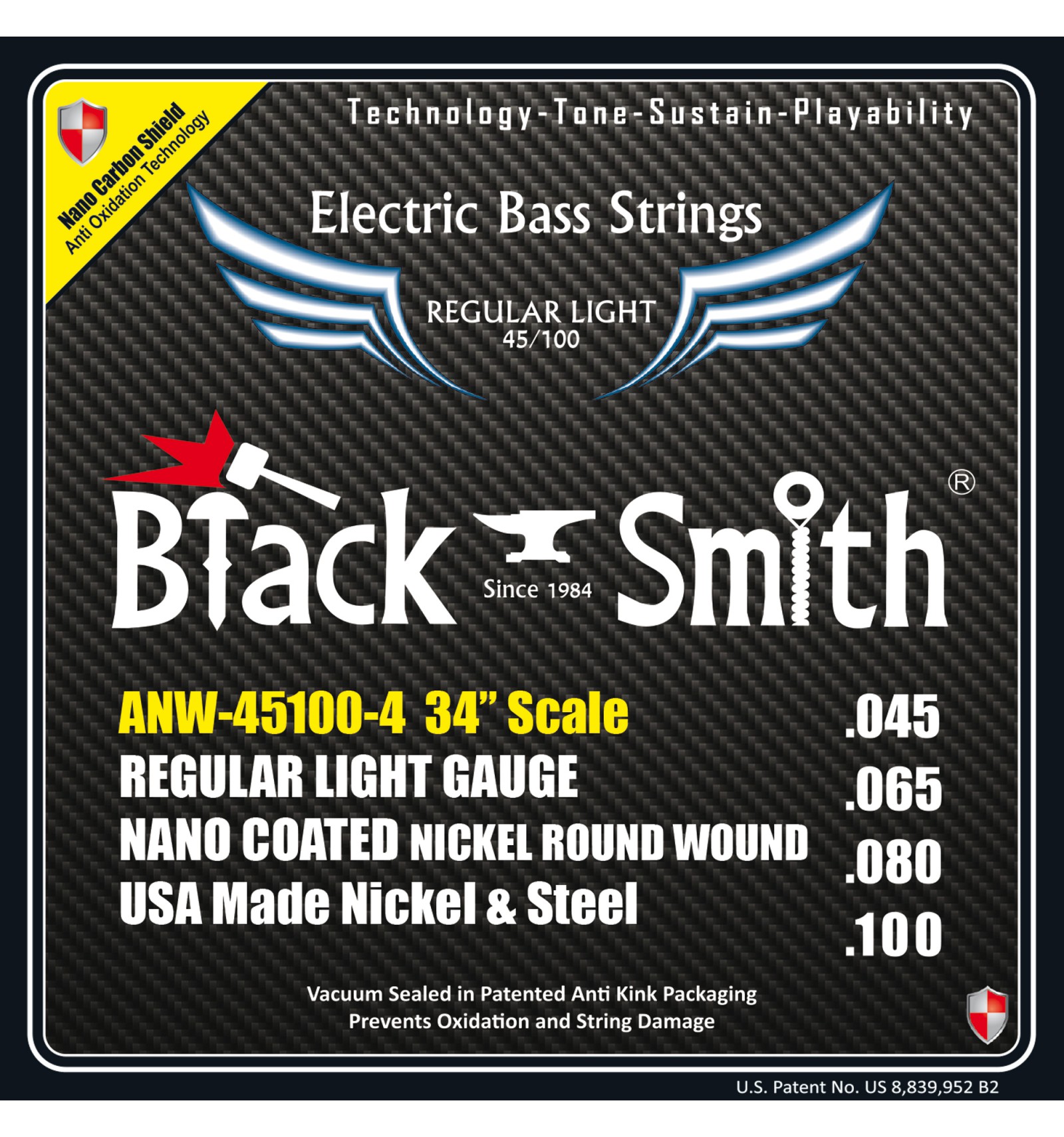The Nano Carbon Shield AOT (anti oxidation technology) coating prevents oxidation and dirt build-up on the wound strings without blocking the string ground conductivity like other brands – a BlackSmith exclusive!! With BlackSmith Nano Carbon Shield coated electric bass strings, you will experience the perfect balance of consistency, tone, and playability.