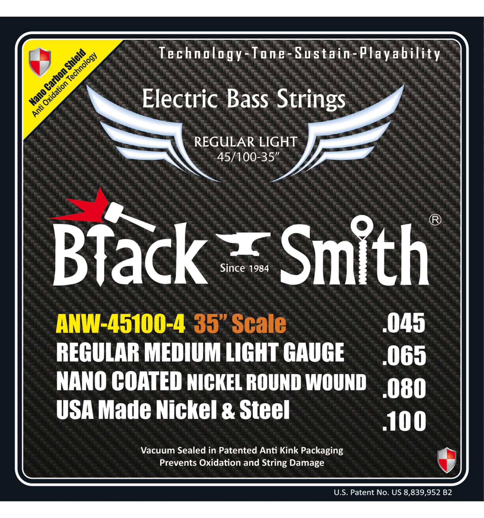 BlackSmith electric bass strings are made with the finest materials and manufactured using state-of-the-art automatic servo controlled winding equipment. USA made nickel and steel ensures a long lasting string with increased sustain and purer tone.