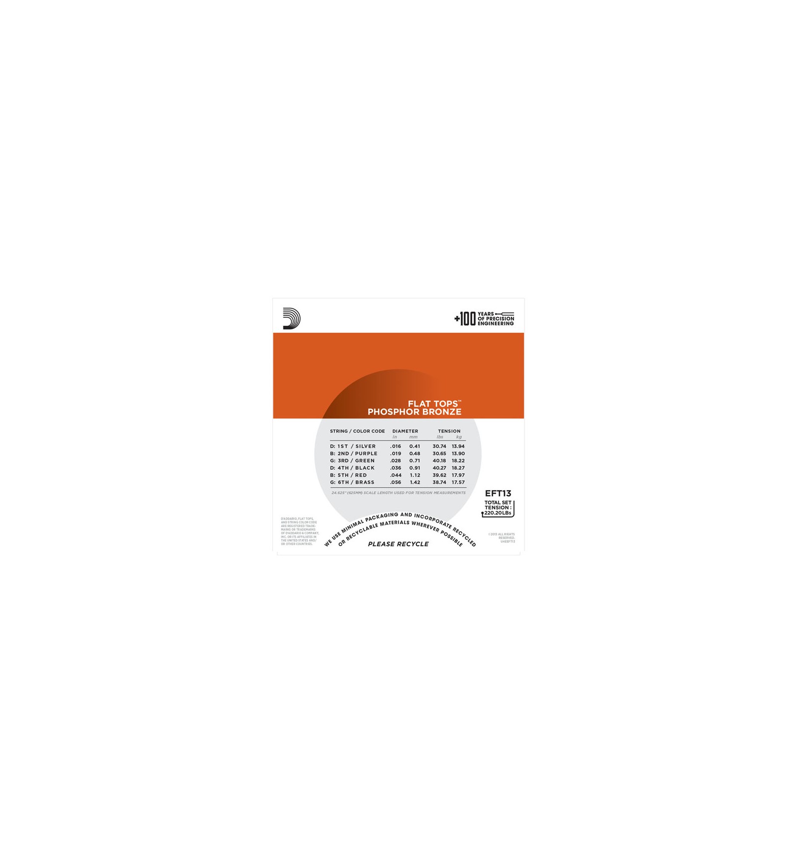 D'Addario Flat Tops are round wound, then precision ground, leaving the outer surface smooth and "semi-flat." This produces a smooth, flattened playing surface, but does not sacrifice the superb tone and sustain associated with phosphor bronze strings. Flat Tops greatly reduce finger noise and are excellent for recording and flat-picking.