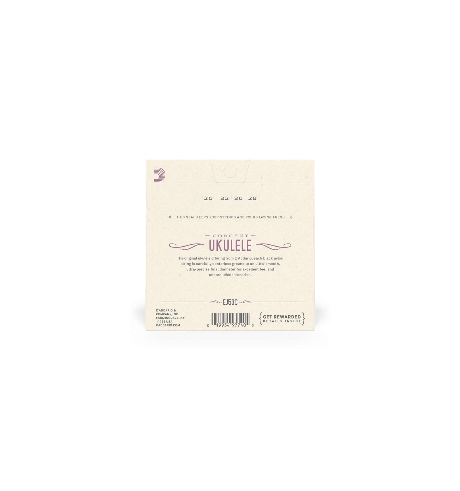 EJ53C is a black nylon string set for concert ukulele. Pro-Arté Black Nylon sets the standard in terms of warm ukulele tone, intonation, and dynamic response.