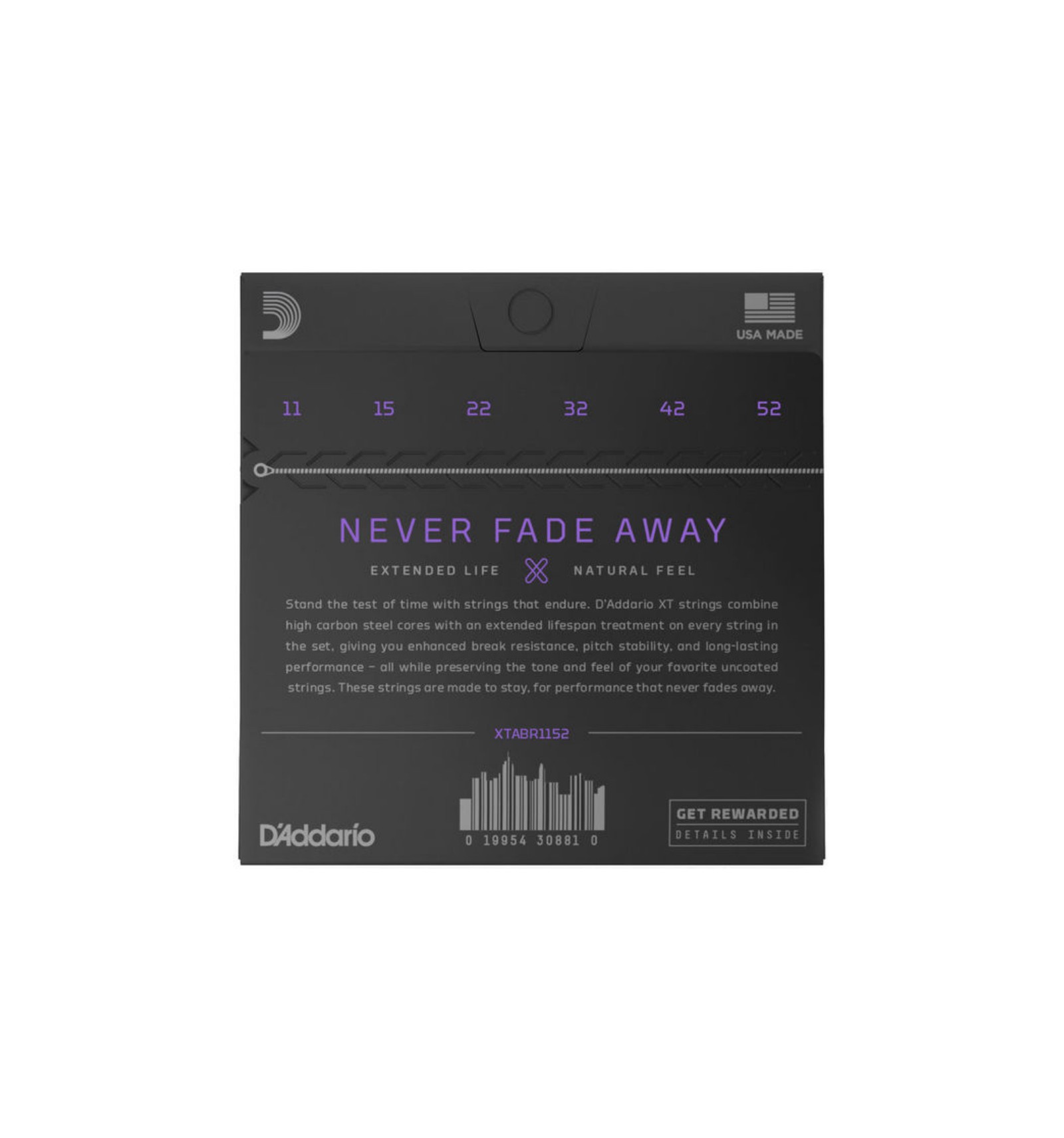 D’Addario XT strings feature high carbon steel cores with an extended lifespan treatment on every string in the set, giving you enhanced break resistance, pitch stability, and long-lasting performance – all while preserving the tone and feel of your favorite uncoated strings. These strings are made to stay, for performance that never fades away.
