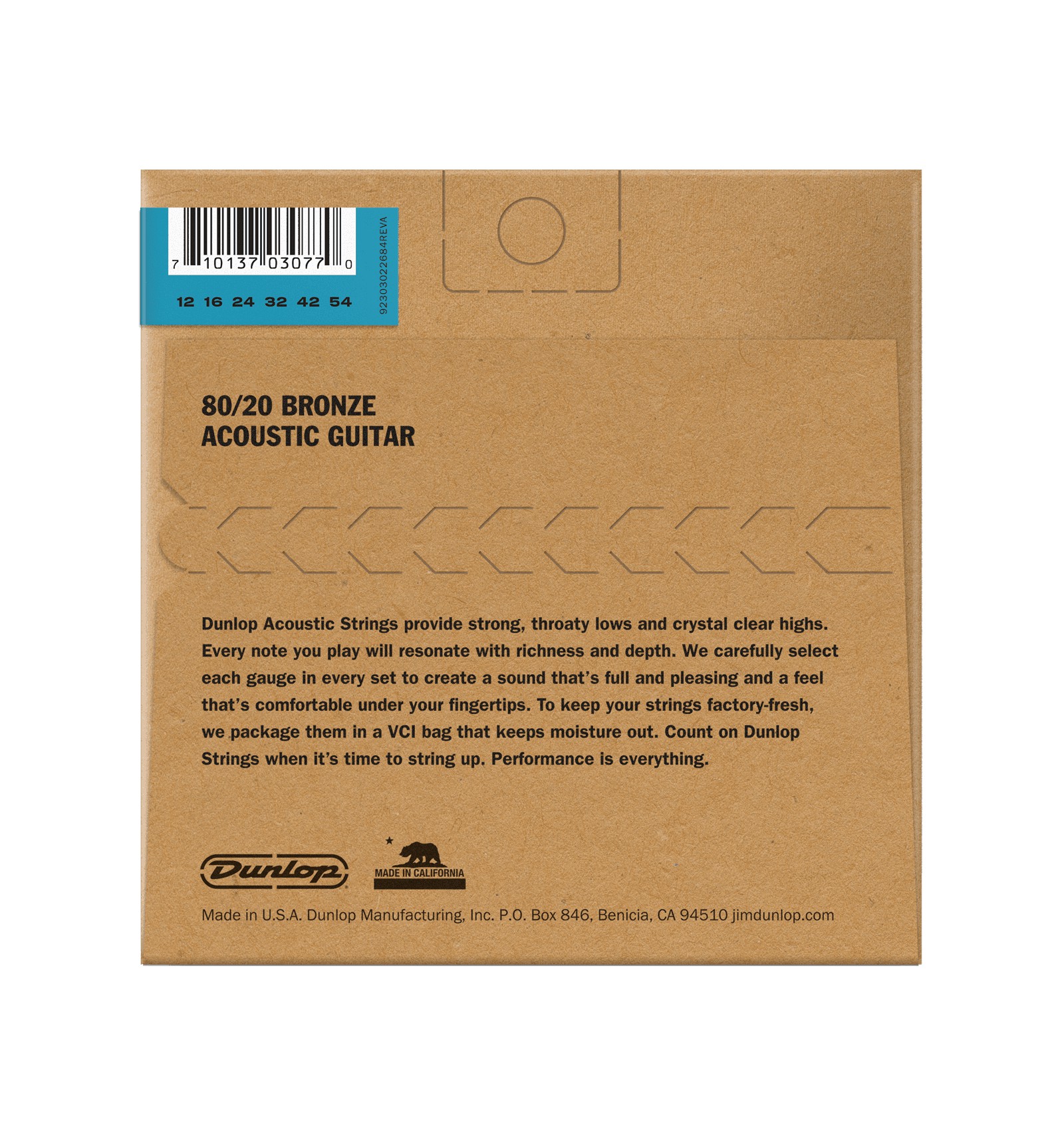 Every set of Dunlop Acoustic Guitar Strings delivers brilliant and rich tone for a dynamic and expressive acoustic experience. The finest wire combined with precise construction produce versatile strings durable enough to withstand hard strumming—and responsive enough for delicate fingerpicking. Chords ring out with great clarity, bass notes growl, and harmonics pop and sing.