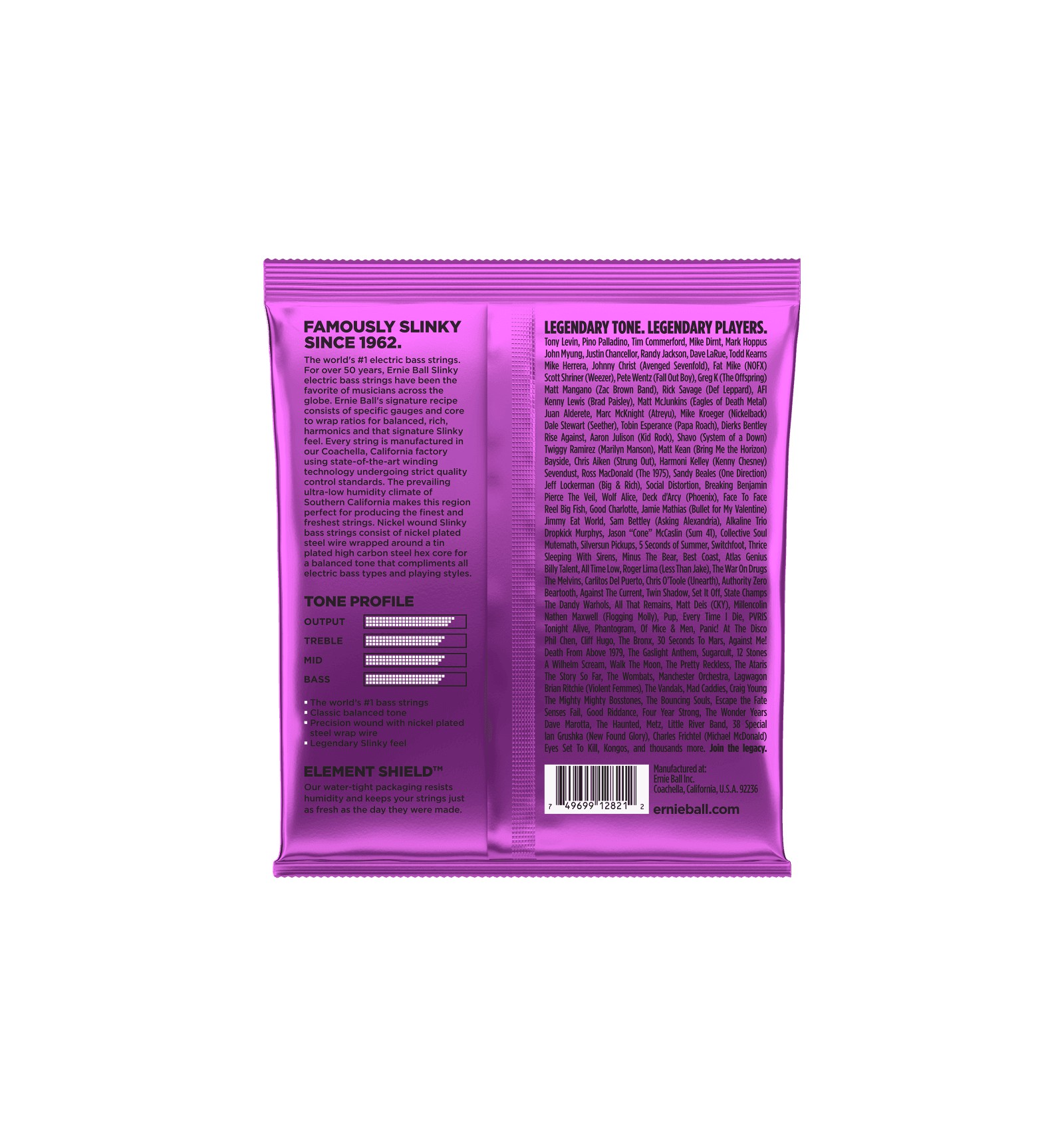 Faîtes de fil d'acier plaqué enroulé autour d'un fil en acier plaqué d'étain de forme hexagonale. Ces cordes sont les plus populaires chez Ernie Ball. Elles procurent un son bien équilibré et homogène avec à la fois beaucoup de rondeur et de punch.
