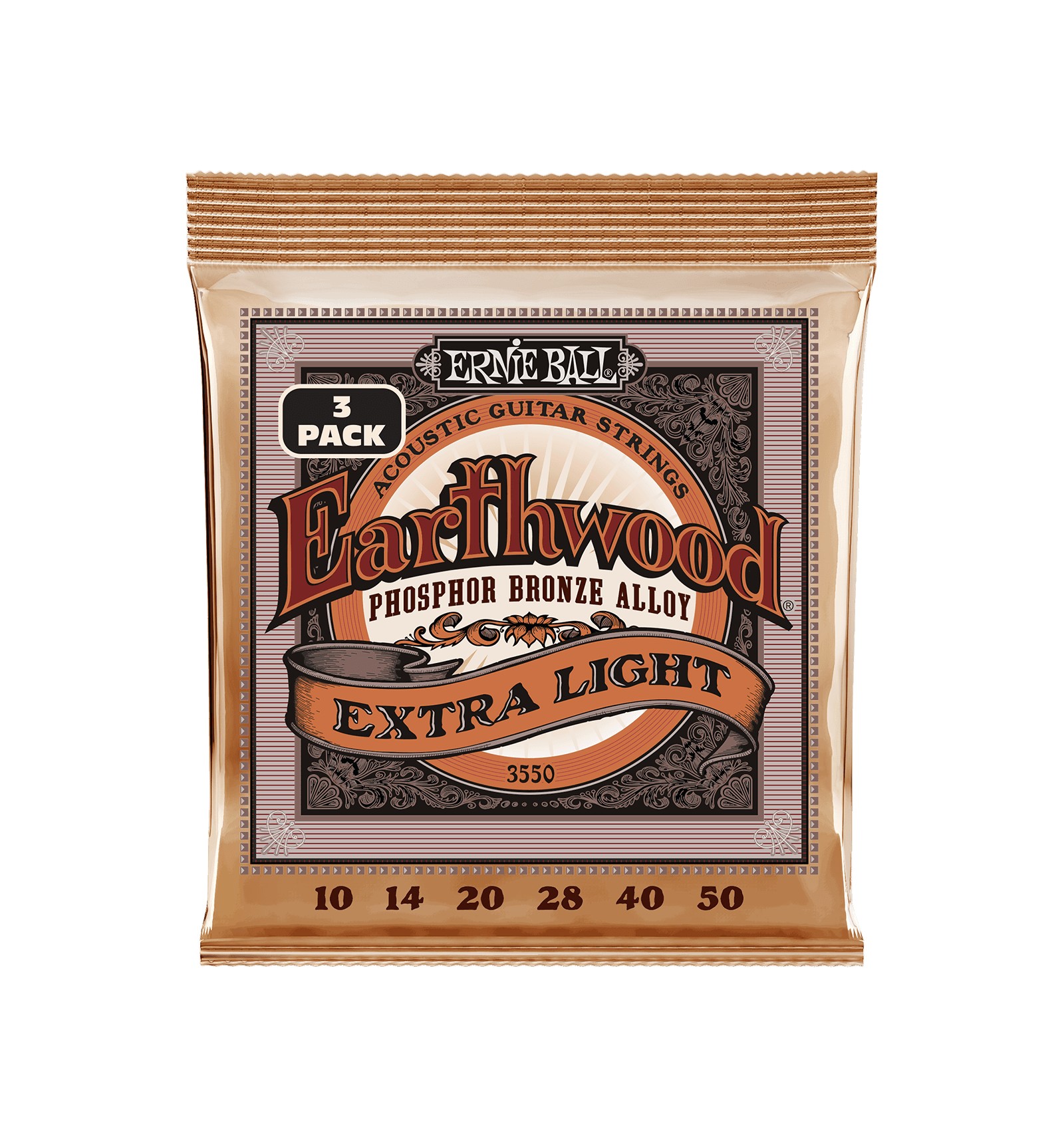 Ernie Ball Earthwood Phosphor Bronze acoustic guitar strings are produced with an exclusive phosphor bronze wrap wire. Engineered to meet the demands of acoustic musicians worldwide, these concert quality strings provide deep, rich bass notes with clear bright trebles.