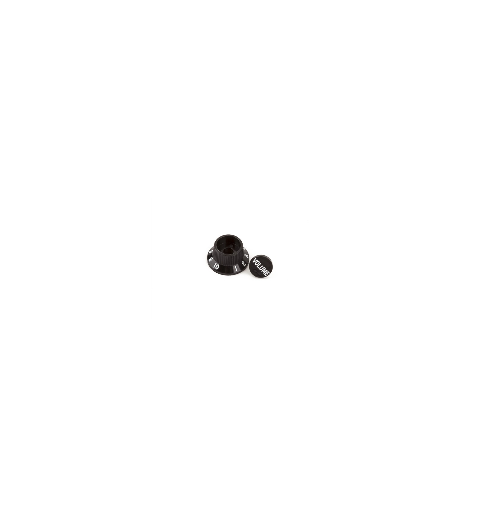 Black plastic push-on knob and button cap for use with S-1™ switch, which can be retrofitted to nearly any U.S.- and Mexico-made Stratocaster manufactured from 1954-present. Fits 1/4" split shaft controls.