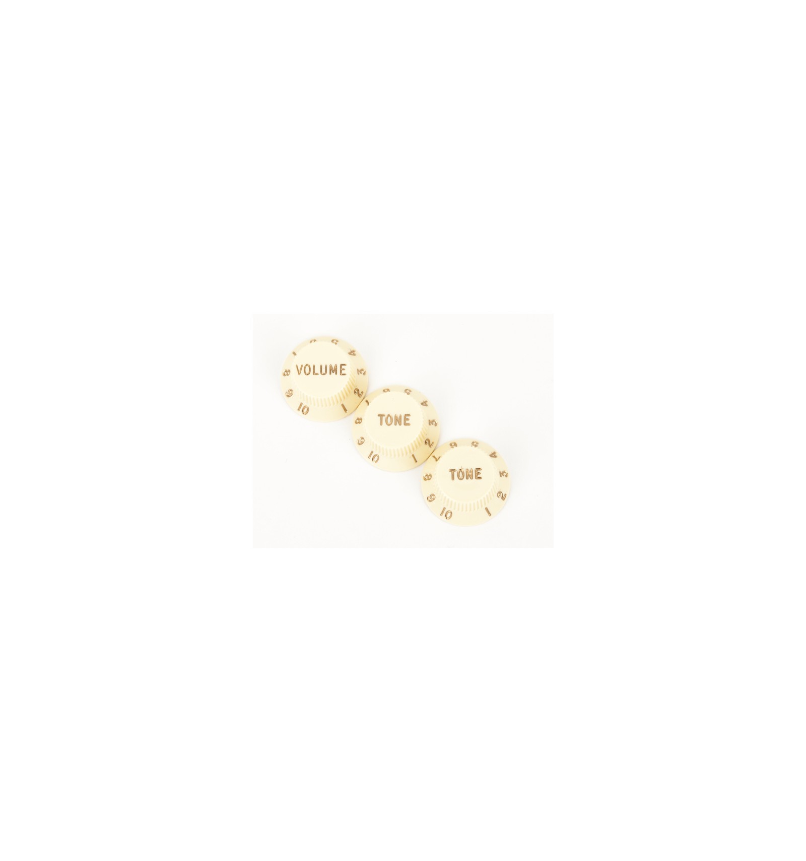 Set of three plastic push-on control knobs designed to fit 1/4" split-shaft potentiometers on nearly all U.S.- and Mexico-made Stratocaster models manufactured from 1954-present.