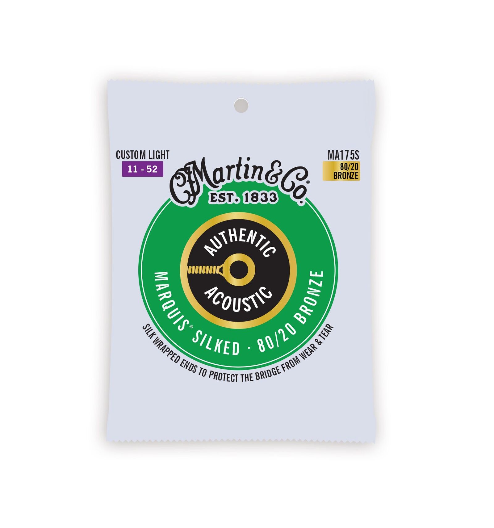 Martin Guitar knows a thing or two about pampering valuable instruments. If you’re looking for some extra protection for your fine guitar, Authentic Acoustic Silked strings are the right choice for you. We’ve added a soft silk wrap to the ball ends of our Authentic Acoustic strings to prevent wear and tear on the bridge and bridge plate as you play. Our silk wrap puts a comforting layer of protection in place every time you change your strings. Available in 80/20 Bronze and 92/8 Phosphor Bronze.