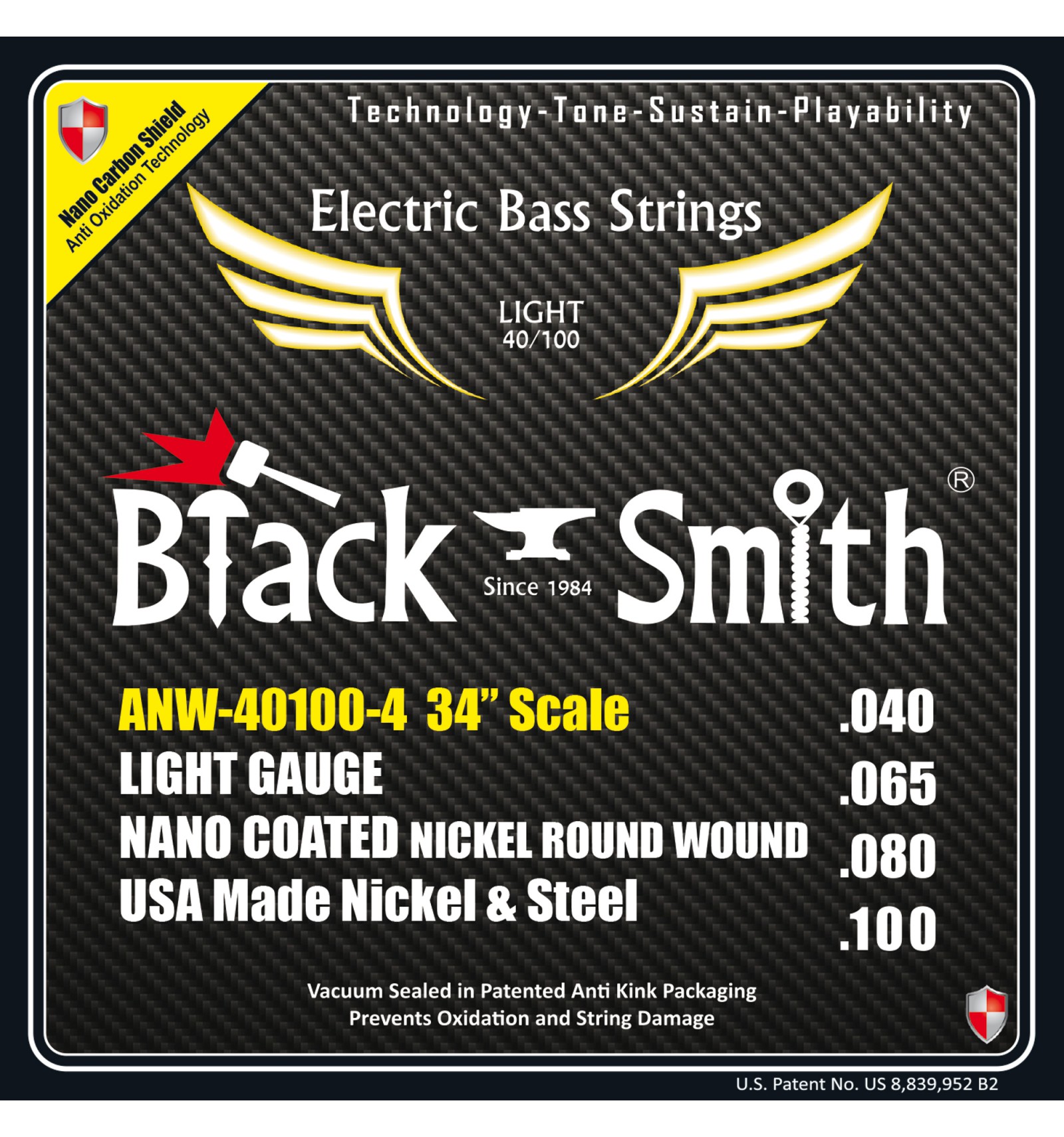 La compañía BlackSmith decidió tomar esos mismos conceptos de precisión para manufacturar una línea de cuerdas de alta calidad y precio justo para bajo eléctrico. Tanto es así que para su fabricación, BlackSmith diseñó su propia maquinaria servo-accionada controlada por computadora. Las cuerdas BlackSmith llevan acero y níquel norteamericano de alta calidad, y tienen la particularidad de incluir un packaging al vacío junto con un sistema de separadores de cuerdas patentado por BlackSmith (anti-kink string cards), que evita el contacto entre las mismas dentro del paquete.