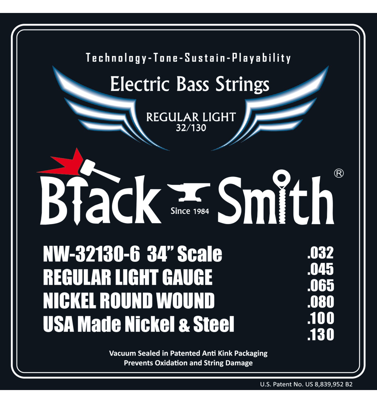 La compañía BlackSmith decidió tomar esos mismos conceptos de precisión para manufacturar una línea de cuerdas de alta calidad y precio justo para bajo eléctrico. Tanto es así que para su fabricación, BlackSmith diseñó su propia maquinaria servo-accionada controlada por computadora. Las cuerdas BlackSmith llevan acero y níquel norteamericano de alta calidad, y tienen la particularidad de incluir un packaging al vacío junto con un sistema de separadores de cuerdas patentado por BlackSmith (anti-kink string cards), que evita el contacto entre las mismas dentro del paquete.