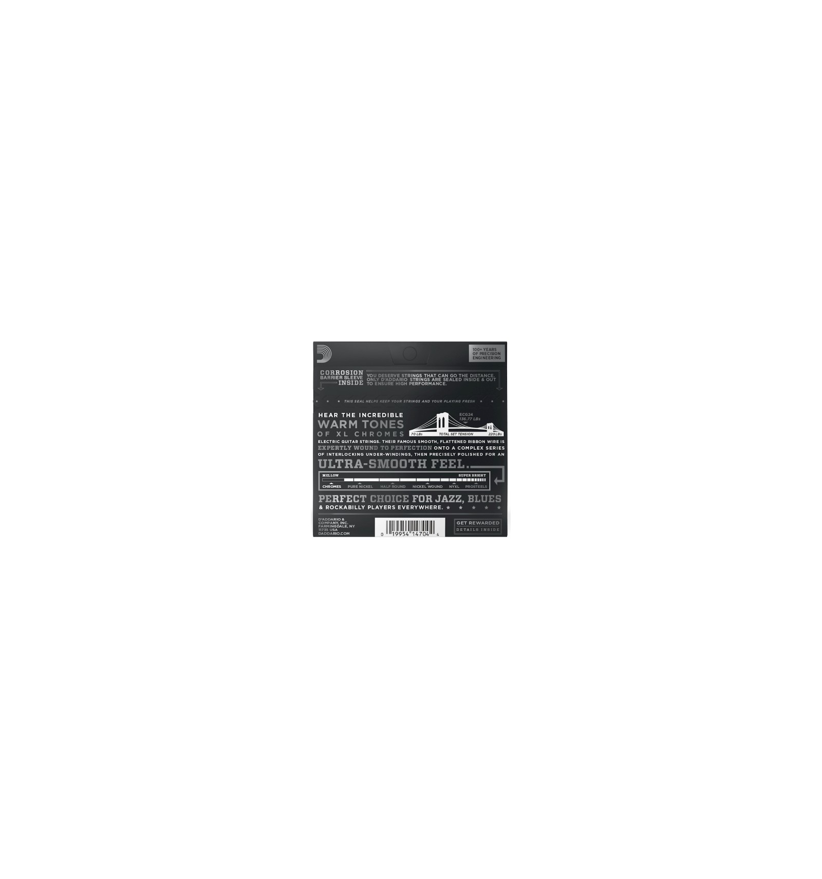 Las cuerdas D'Addario entorchado en cromo se caracterizan por su entorchado liso de acero inoxidable “stainless” produciendo así un sonido muy cálido , con un ataque suave e ideal para el jazz.
