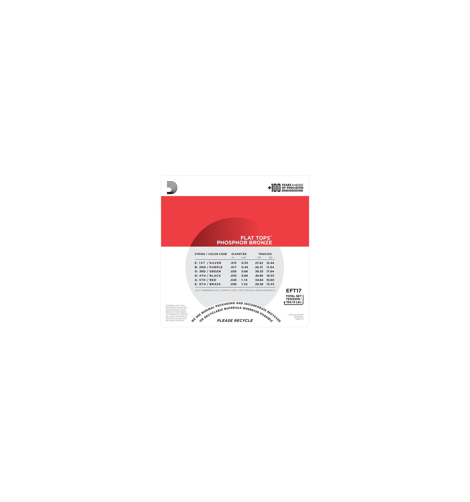 Las cuerdas de la serie Flat Tops de D'Addario se someten a un proceso de entorchado redondo y luego se realiza un amolado de precisión para que la superficie externa quede suave y semiplana. Esto produce una superficie suave y aplanada, pero no afecta el tono exquisito y el efecto sostenido asociados con las cuerdas de bronce fosforado.