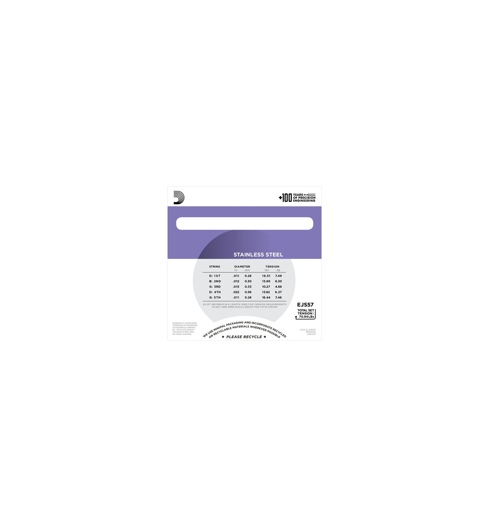 | Strings : composition | 011, 012, 013, 022 wound |