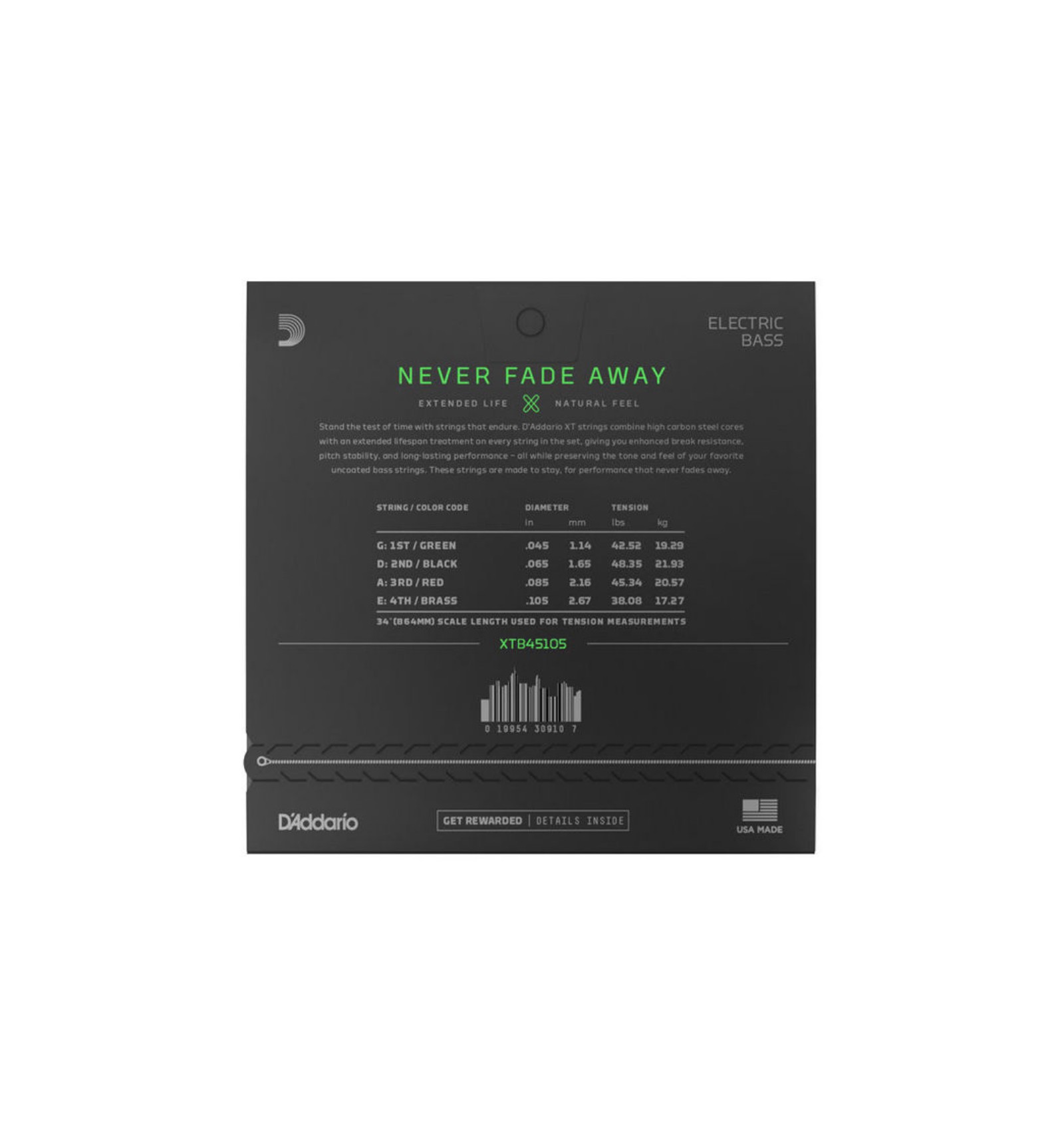 D’Addario XT strings feature high carbon steel cores with an extended lifespan treatment on every string in the set, giving you enhanced break resistance, pitch stability, and long-lasting performance – all while preserving the tone and feel of your favorite uncoated strings. These strings are made to stay, for performance that never fades away.