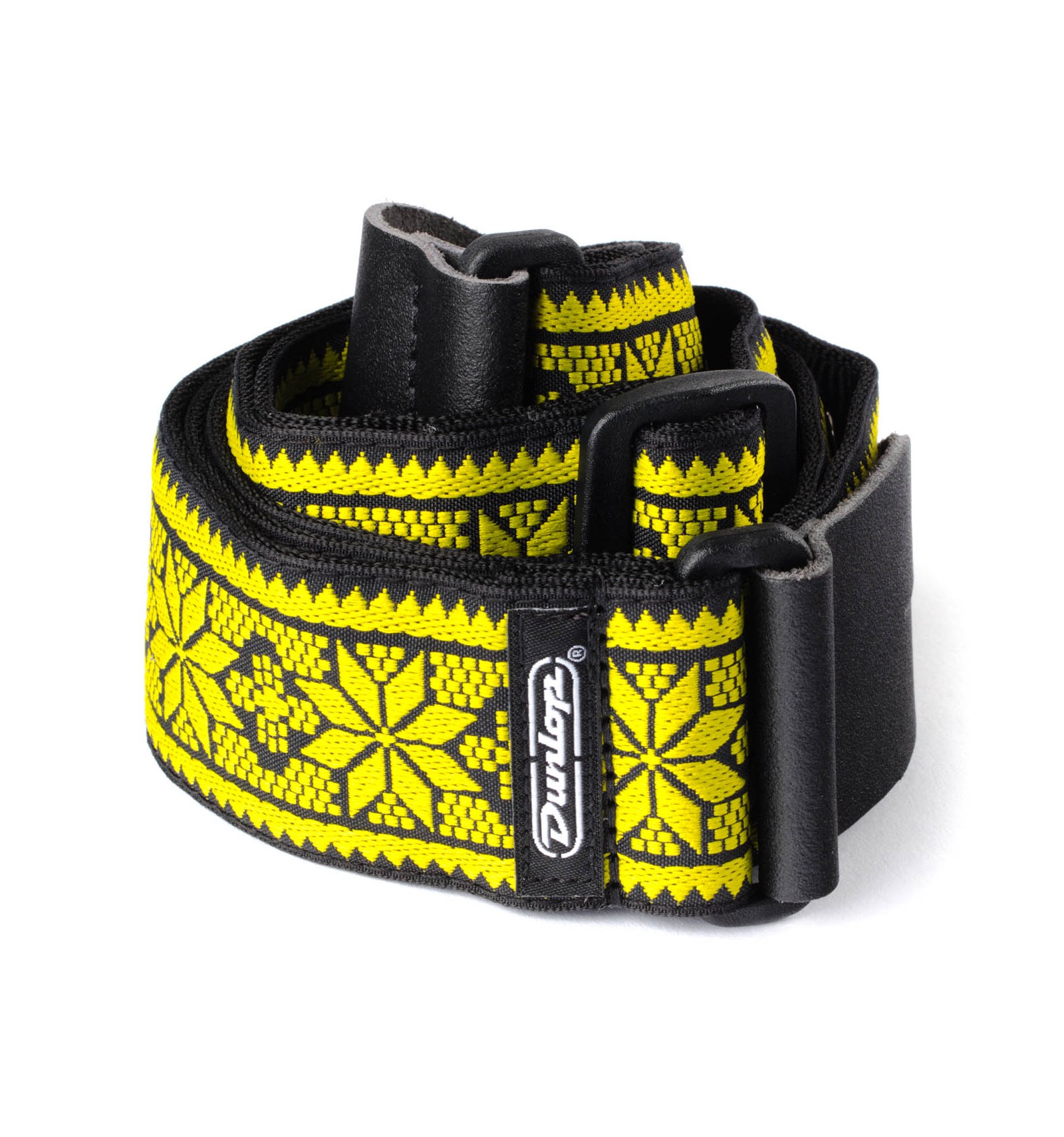La correa de la guitarra Dunlop Jacquard está hecha de cómodo, alta calidad Jacquard tejido con un patrón vibrante, colorido diseñado por artistas en casa. La correa es tirar-probado a 90 kg y tiene extremos de cuero genuino diseñados para uso con o sin el sistema de retención de Straplock.