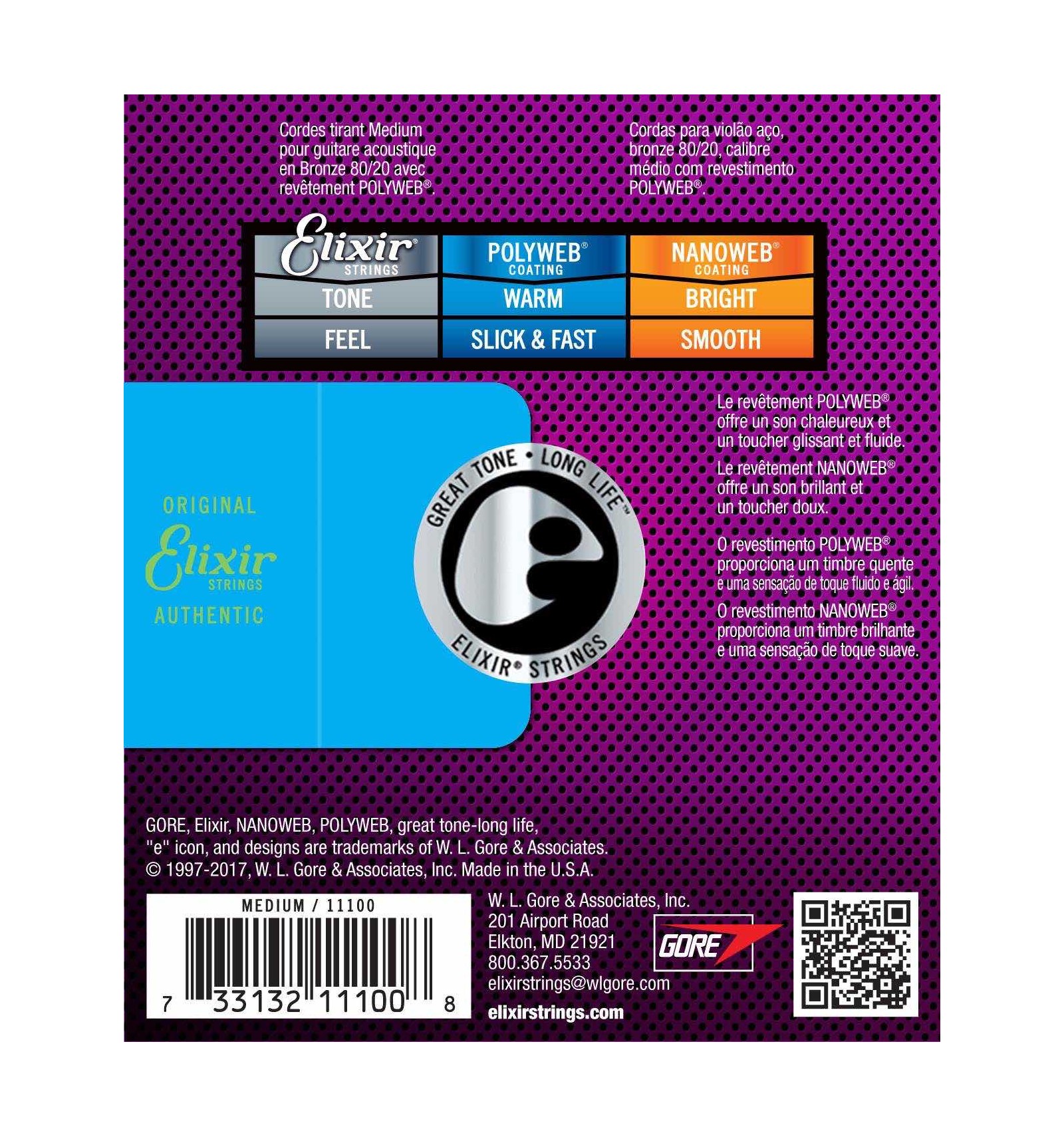 | Strings : series | Elixir Acoustic 80/20 Bronze with POLYWEB® Coating |