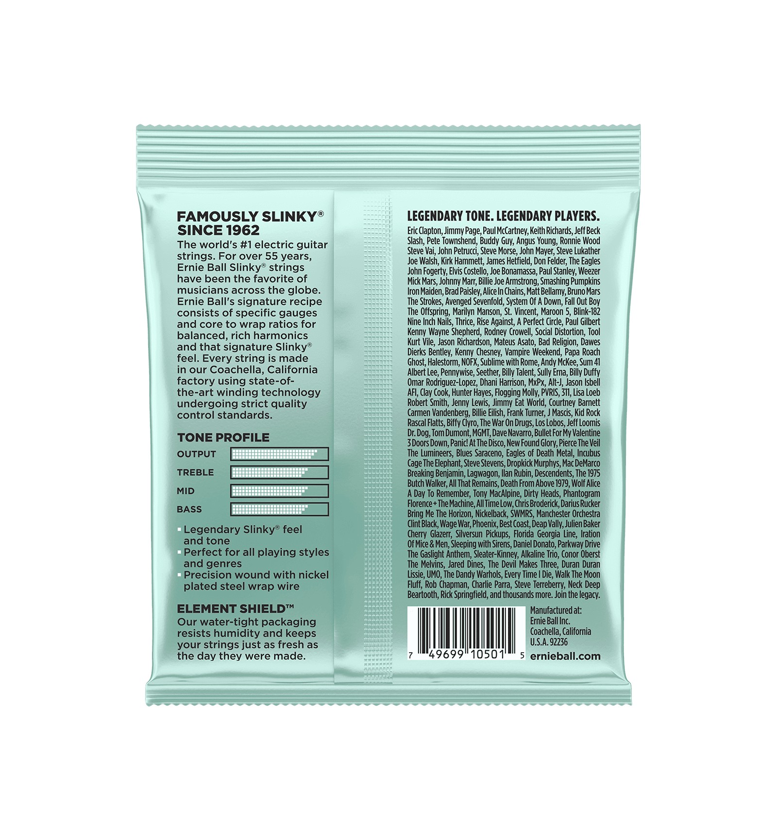 Realizadas en acero chapado enrollado en un hilo de acero chapado en estaño de forma hexagonal. Estas cuerdas son las más conocidas de Ernie Ball. Producen un sonido muy equilibrado y homogéneo. Como toda cuerda de Ernie Ball se destacan por un sonido muy bueno y una precisión perfecta.