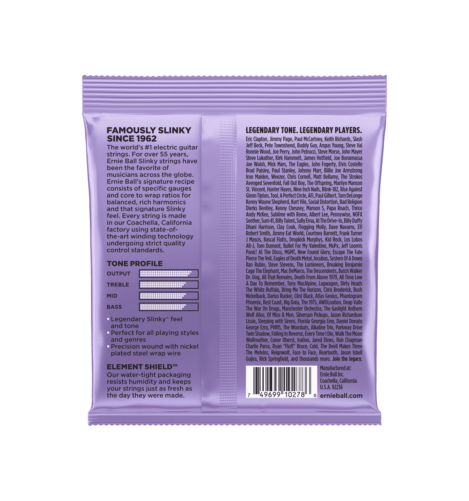 Realizadas en acero chapado enrollado en un hilo de acero chapado en estaño de forma hexagonal. Estas cuerdas son las más conocidas de Ernie Ball. Producen un sonido muy equilibrado y homogéneo. Como toda cuerda de Ernie Ball se destacan por un sonido muy bueno y una precisión perfecta.