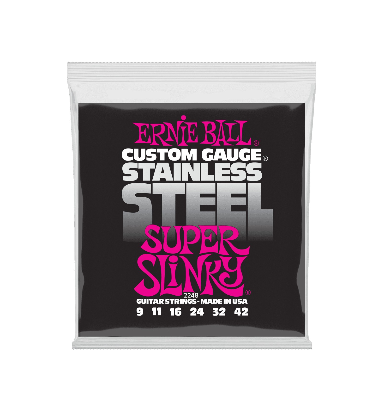 Fabricada con acero inoxidable envuelto alrededor de un núcleo hexagonal de acero. Las cuerdas planas son de acero de alto carbono estañado. Estas cuerdas proporcionan un sonido más brillante y una mayor duración.