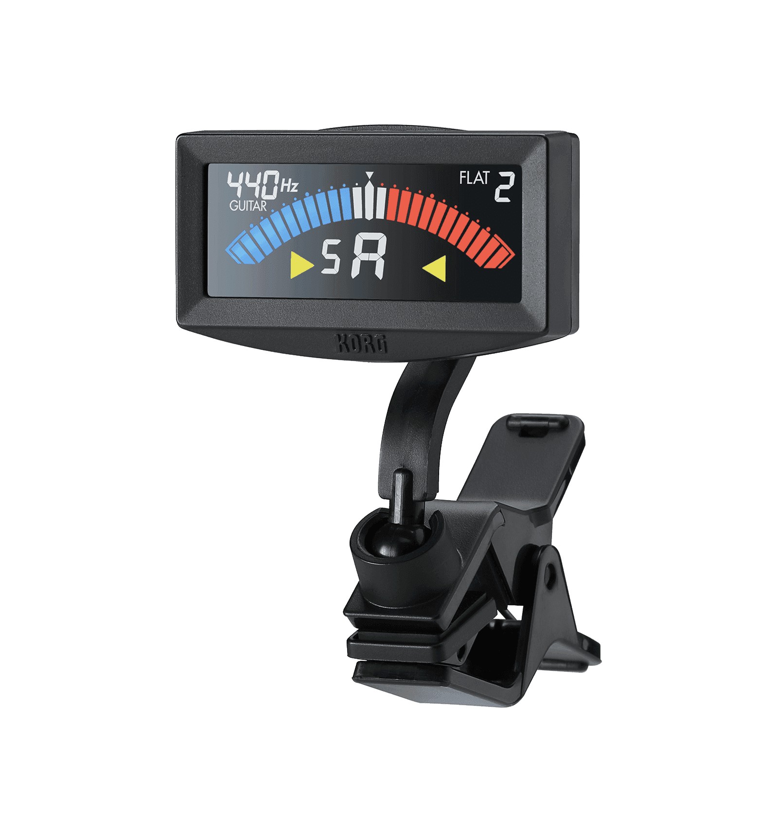 El Clip de PitchCrow-G Korg en Tuner es un afinador muy ligero y delgado que firmemente sujeta en el cabezal de su guitarra o bajo para afinar altamente precisa y sencilla. La pantalla LCD a todo color es fácil de ver, incluso en escenarios oscuros, y la batería proporciona 24 horas de uso continuo.