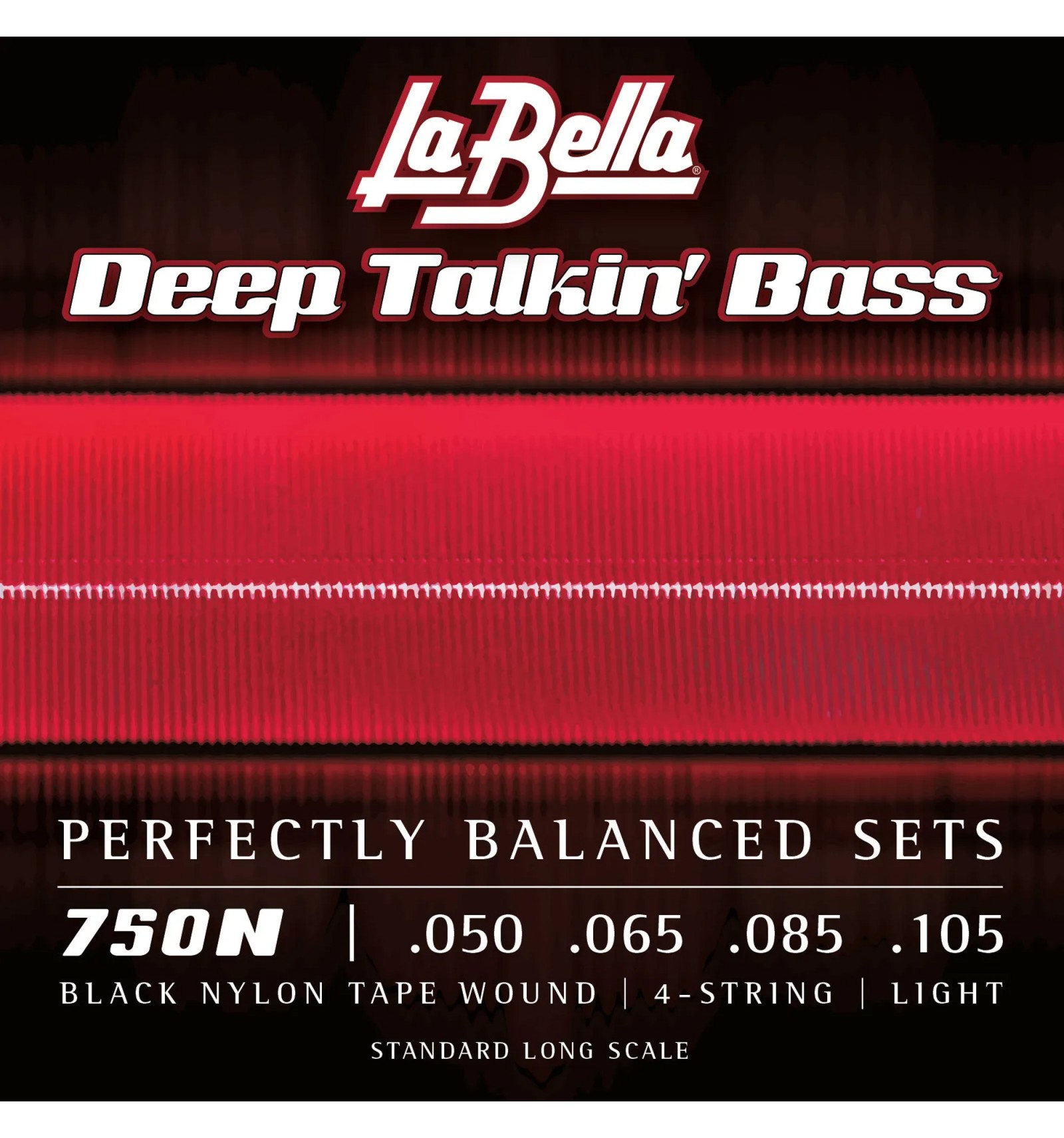 La Bella Black Nylon Tape Wound bass strings have an incredibly smooth outer wrap of black nylon to create a warm, deep, vintage tone with long sustain. Ideal for frettless bass, these strings also work well on acoustic bass guitars, and are the string of choice for many fretted electric bass players, too.