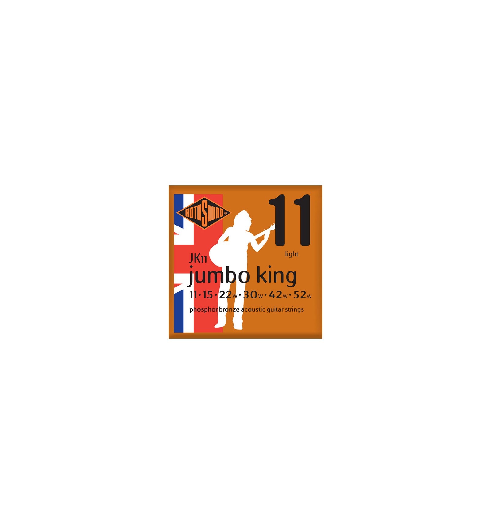 Cuerdas para guitarra acústica entorchada de Bronce fósforo. Estas cuerdas proporcionan un sonido cálido, nítido y extenso. Las cuerdas Jumbo King han sido elegidas por artistas como John Renbourn, Bob Geldof y Gordon Giltrap.