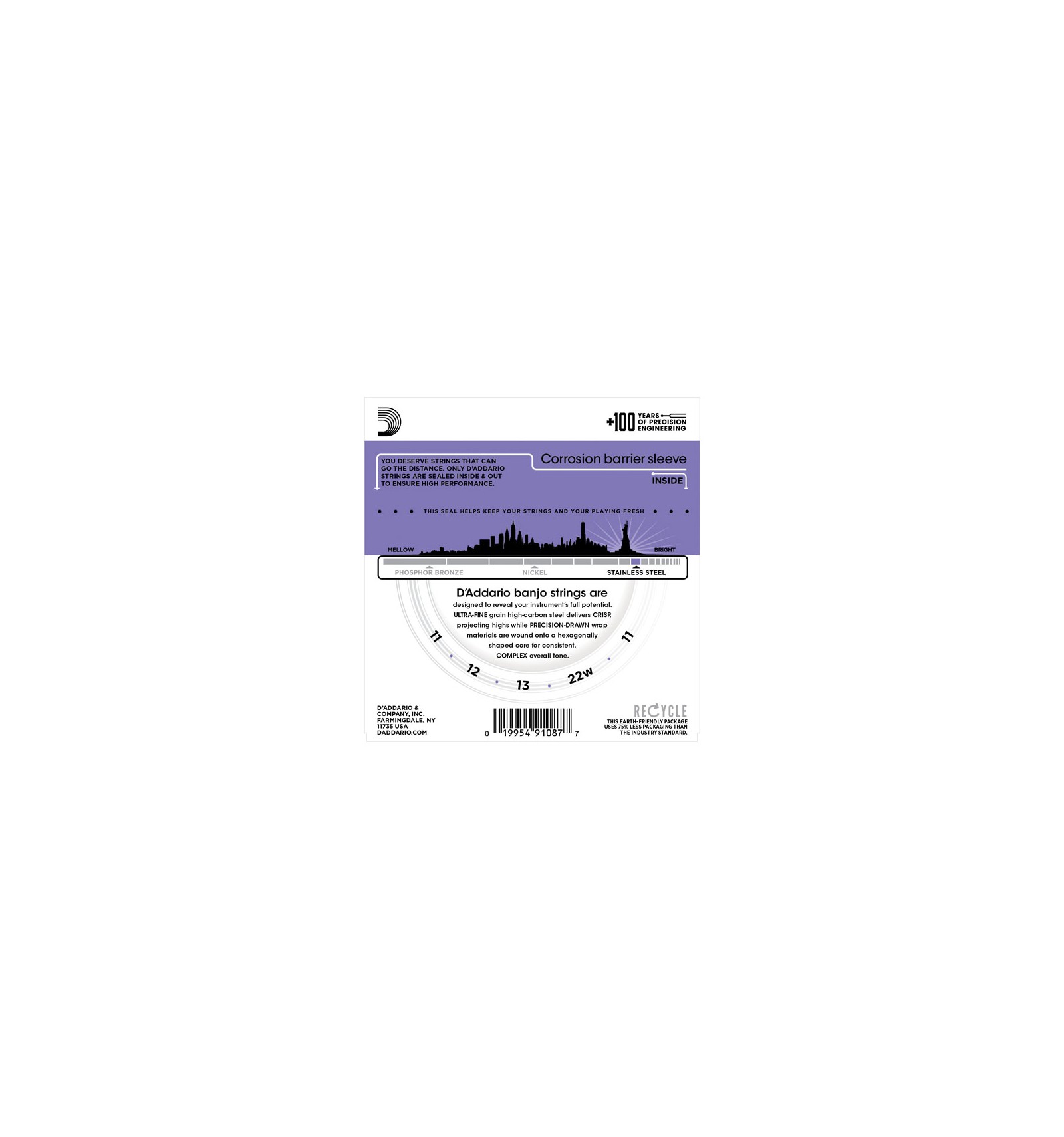 Le EJS57, jeu pour banjo 5 cordes en acier inox au tirant le plus fort proposé par D'Addario offre un maximum de volume et résistance pour un picking puissant. Fabriqué en acier inox, ce jeu offre un son brillant, un toucher doux, et une longue durée de vie. Avec boucle pour un montage universel.