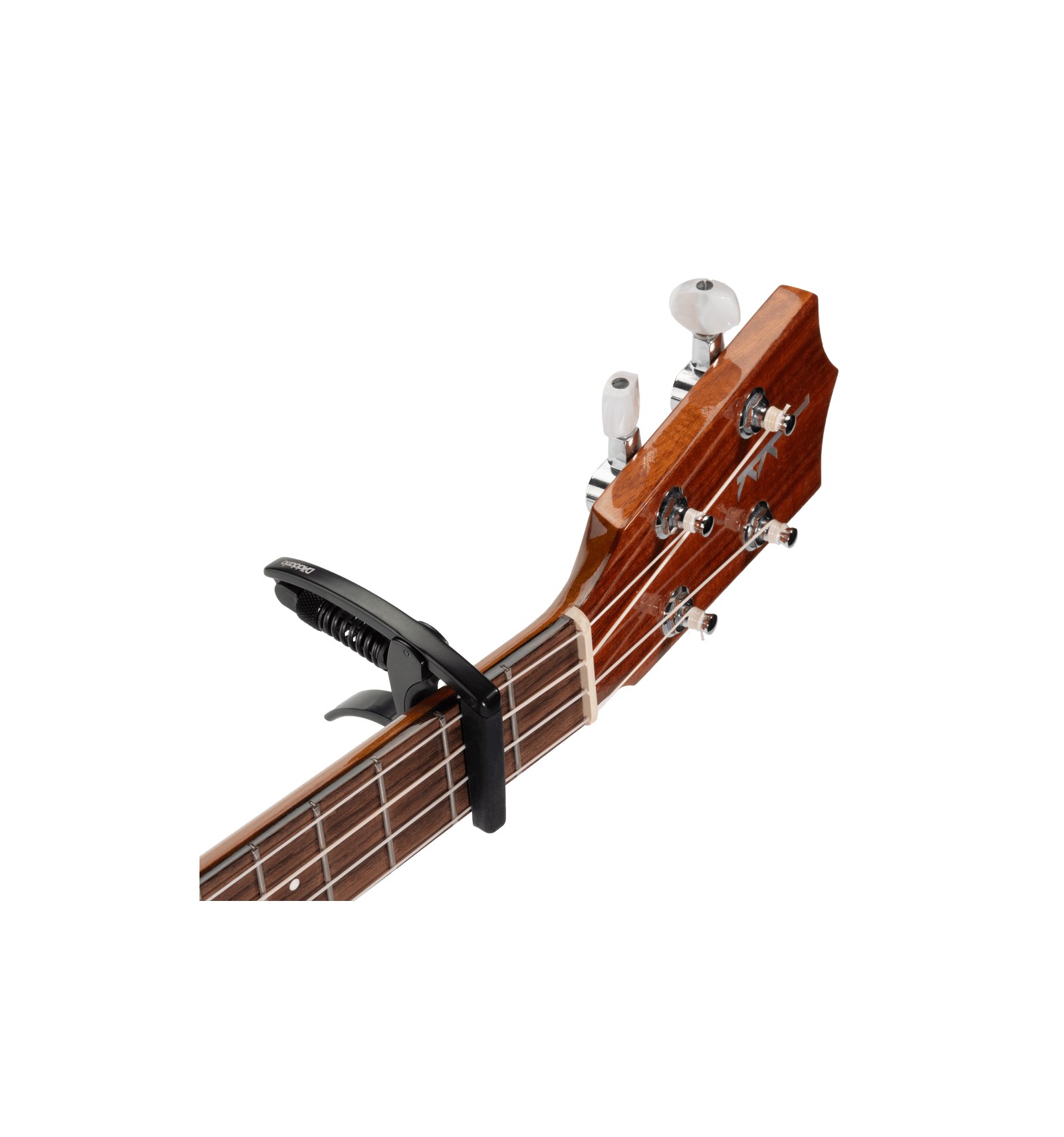 The Tri-Action Ukulele Capo use a patented design to reduce the force required to open and close. This allows you to dial-in the perfect clamping tension, while eliminating the need to retune during use. The micrometer tension adjustment applies direct horizontal pressure, assuring uniform clamping tension regardless of neck profile. Built light and durable, the Tri-Action Uke Capo adds negligible weight to your uke, but can still withstand extensive gigging and travel.