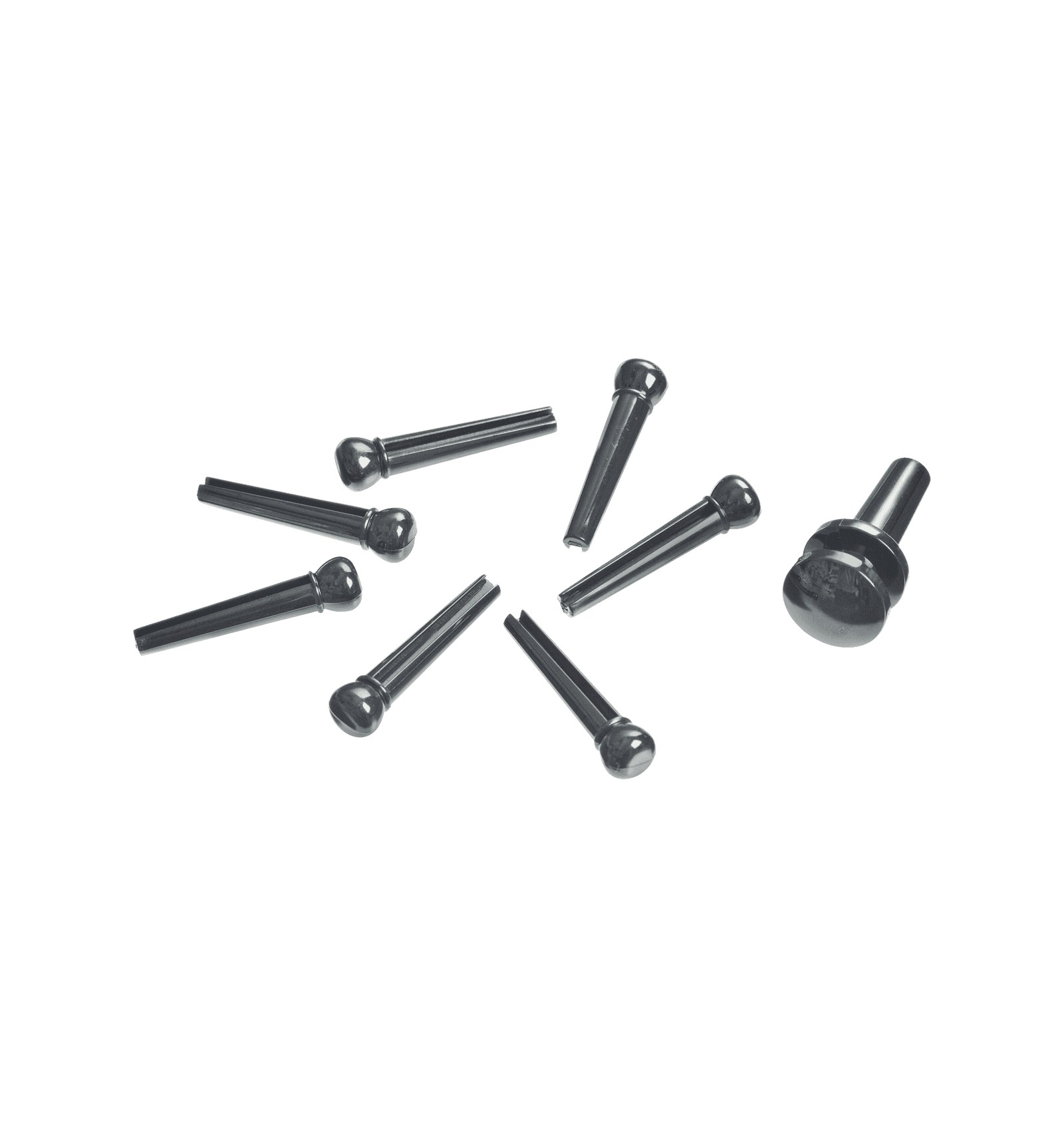 Lot de 7 chevilles et une attache courroie en plastique de haute qualité pour guitare acoustique.