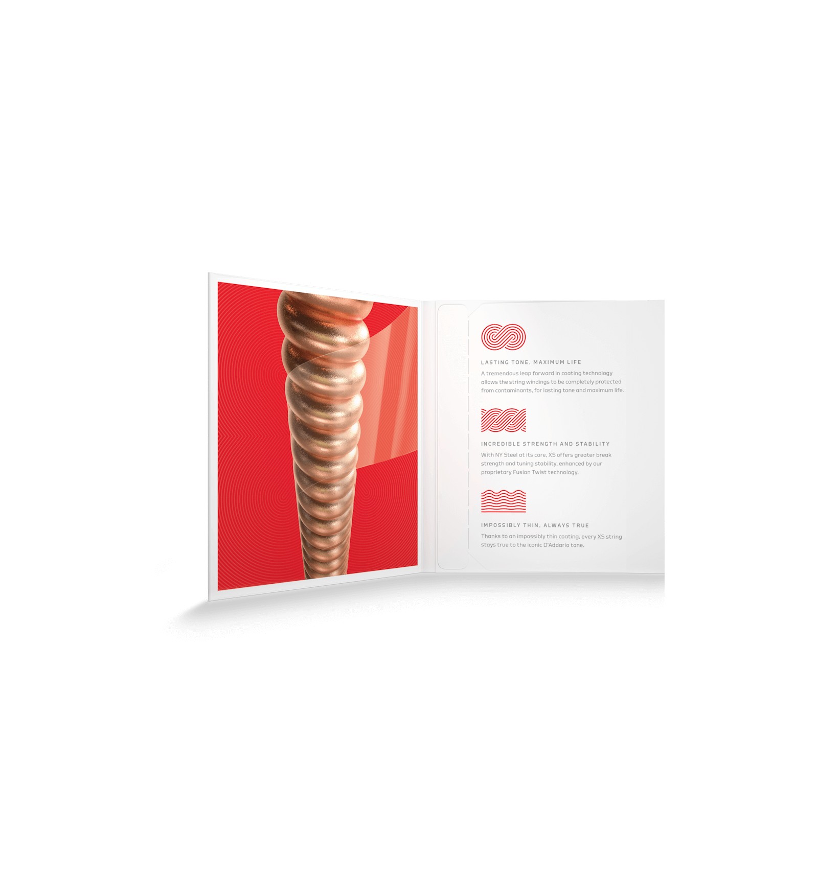Avec son revêtement en film ultra fin sur chaque corde filée, ainsi que son traitement polymère unique sur les cordes aiguës, cette nouvelle gamme offre un très haut niveau de protection pour une durée de vie maximale avec un toucher exceptionnellement doux. XS intègre également l'âme en acier "NY Steel" à haute teneur en carbone ainsi que le procédé d'enroulement exclusif "Fusion twist" pour une résistance à la casse et une stabilité d'accordage incomparable.