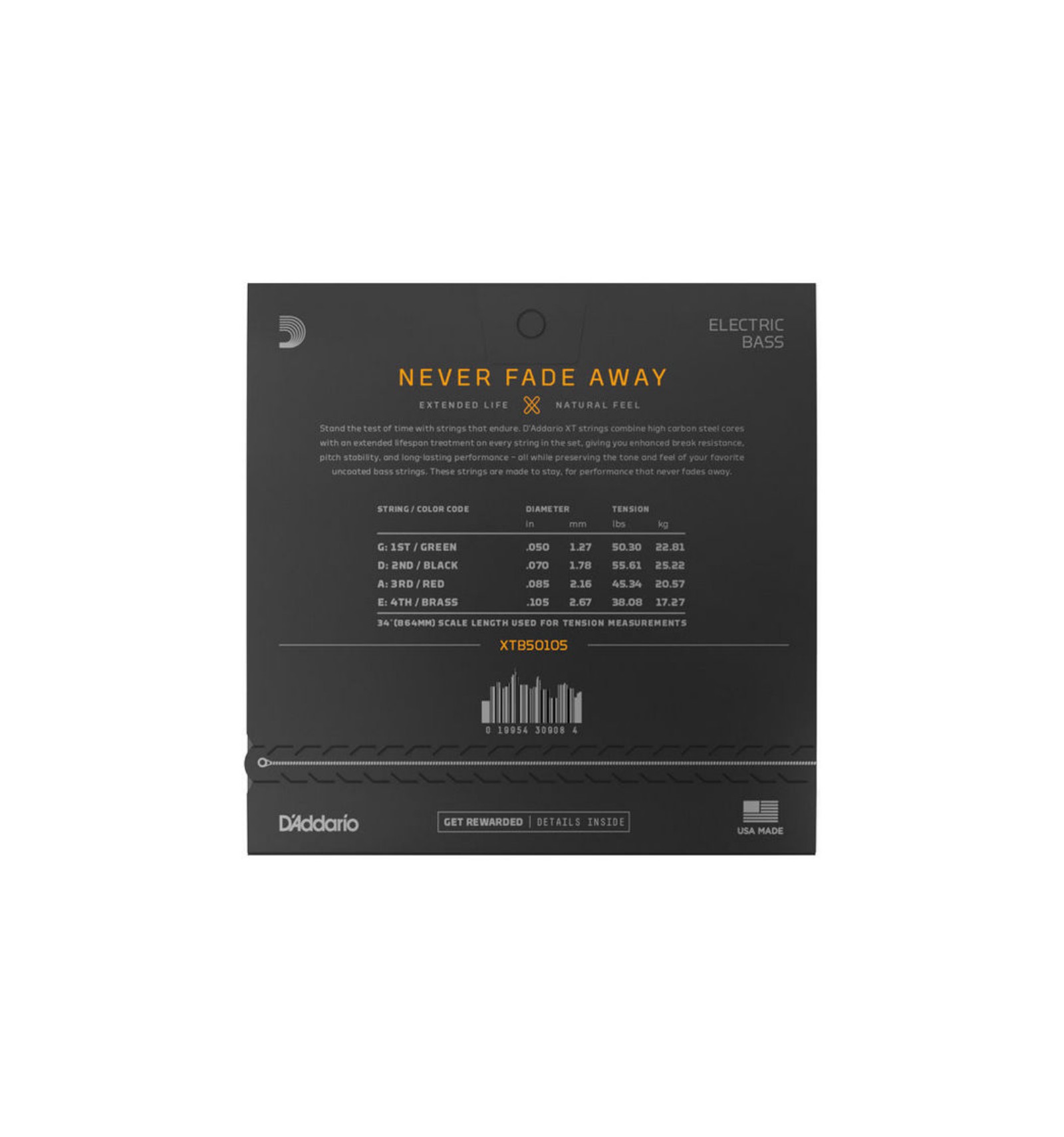Le nouveau traitement microscopique amélioré, développé dans l'usine D'Addario de New York et appliqué sur toutes les cordes, maintient la sonorité et le toucher des cordes neuves qui durent ainsi au moins trois fois plus longtemps. Fabriquées à base d'acier à haute teneur en carbone (NY Steel) couplé au procédé de soudure de l'extrémité à boule "fusion twist", les cordes XT offrent une résistance à la casse et une stabilité d'accordage améliorées.