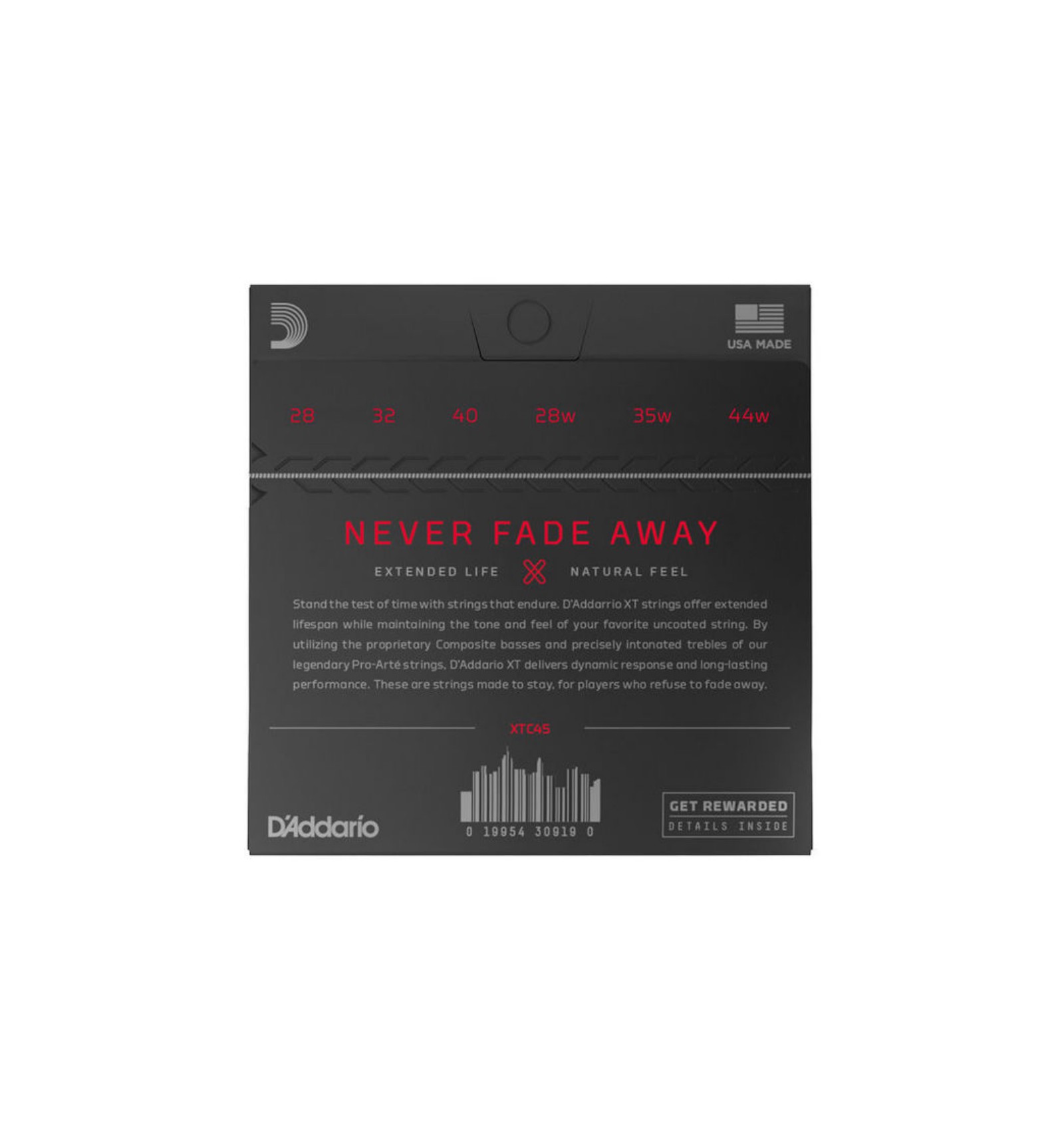 Le nouveau traitement microscopique amélioré, développé dans l'usine D'Addario de New York et appliqué sur toutes les cordes, maintient la sonorité et le toucher des cordes neuves qui durent ainsi au moins trois fois plus longtemps. Fabriquées à base d'acier à haute teneur en carbone (NY Steel) couplé au procédé de soudure de l'extrémité à boule "fusion twist", les cordes XT offrent une résistance à la casse et une stabilité d'accordage améliorées.