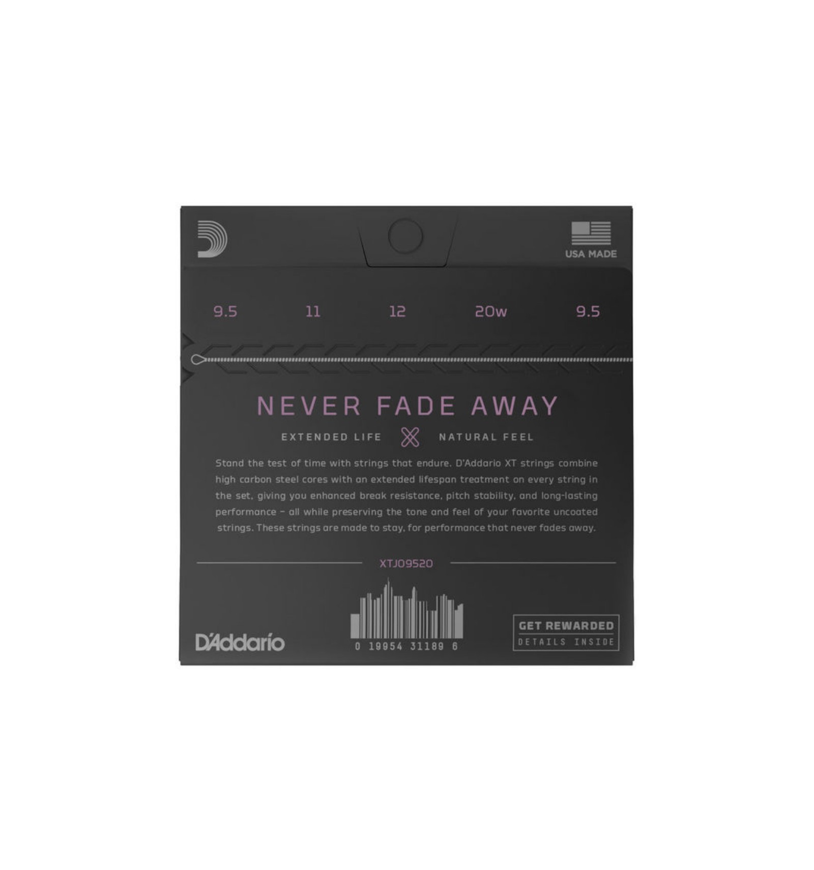 Le nouveau traitement microscopique amélioré, développé dans l'usine D'Addario de New York et appliqué sur toutes les cordes, maintient la sonorité et le toucher des cordes neuves qui durent ainsi au moins trois fois plus longtemps. Fabriquées à base d'acier à haute teneur en carbone (NY Steel) couplé au procédé de soudure de l'extrémité à boule "fusion twist", les cordes XT offrent une résistance à la casse et une stabilité d'accordage améliorées.