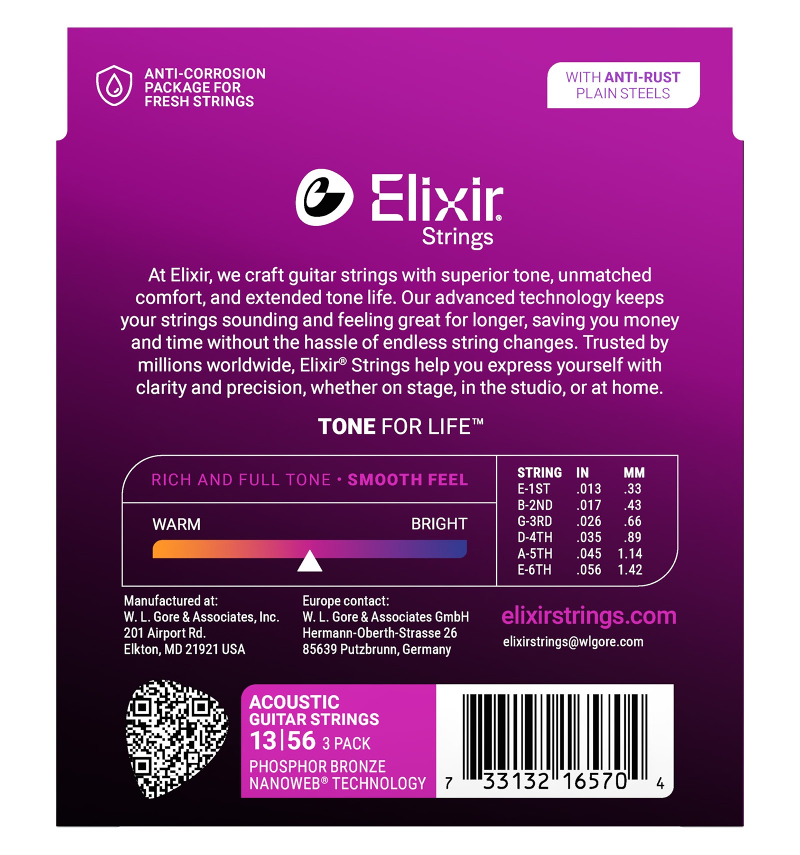 | Cordes : gammes | Elixir Acoustic Phosphor Bronze with NANOWEB Coating |
