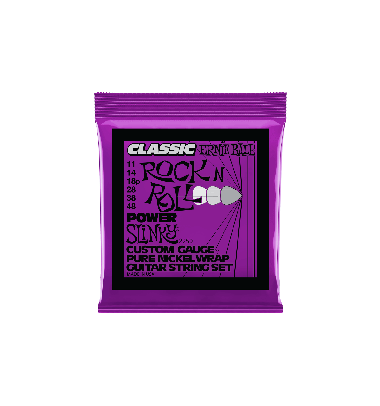 Les cordes slinky classic rock and roll sont faîtes de fil de nickel pur enroulé autour d'un fil en acier plaqué d'étain de forme hexagonale, elles procurent un son riche et chaud. Elles sont la réplique des cordes telles qu'elles étaient fabriquées dans les années 60/70. Jimi Hendrix utilisait ce jeu.