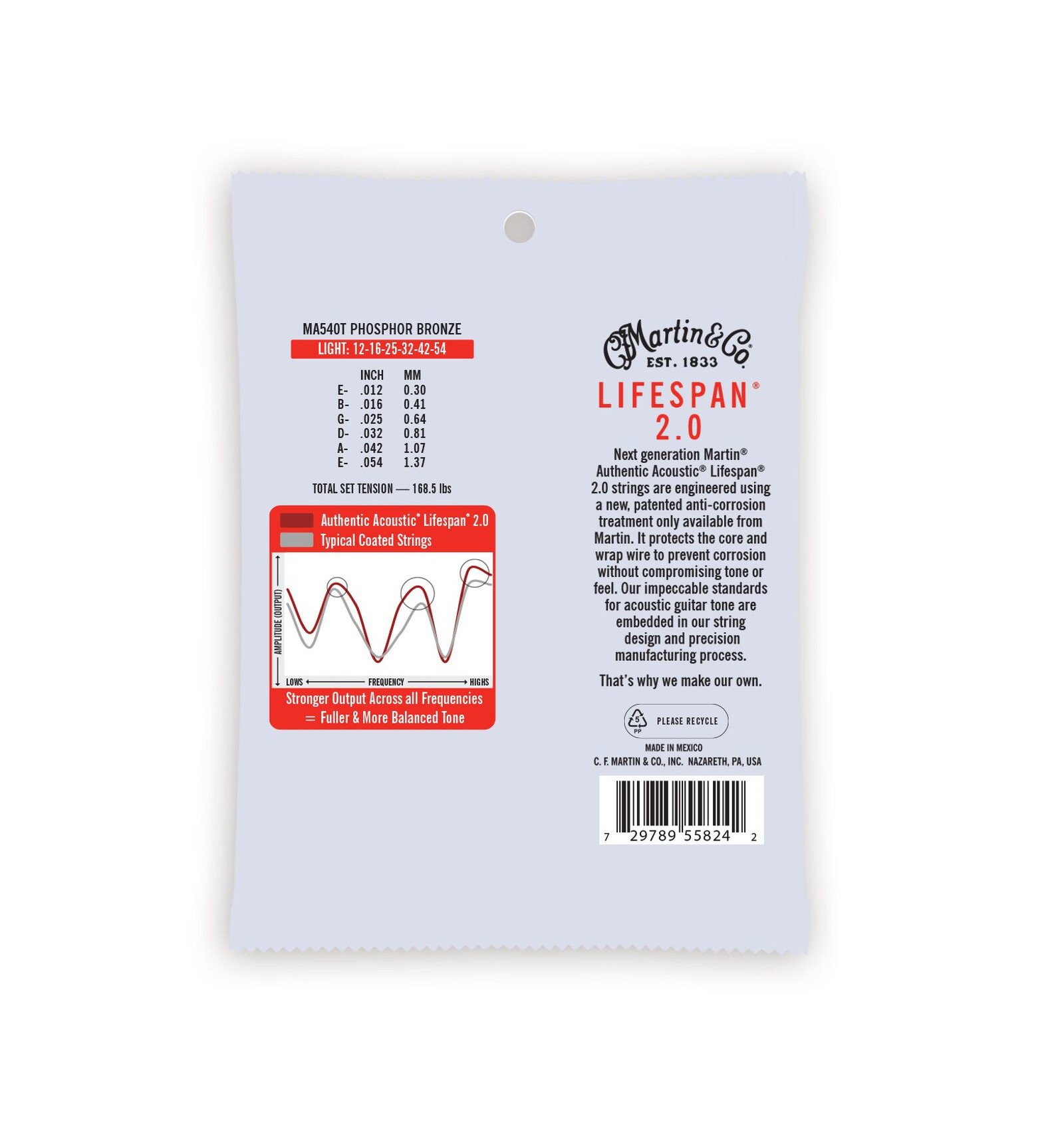 La nouvelle génération de cordes Lifespan a été conçue à partir d'une nouvelle technologie brevetée par Martin. Cette technologie permet de protéger de la corrosion à la fois l'âme et le filage de la corde sans dénaturaliser le son. Les Authentic Acoustic Lifespan 2.0 conservent leur aspect neuf plus longtemps, sonnent mieux et sont plus agréables au toucher. Deux ans de recherche auront été nécessaires pour permettre à Martin Guitar d'élaborer les cordes longue durée les plus performantes du marché. Disponible en 80/20 Bronze et en 92/8 Phosphore Bronze.