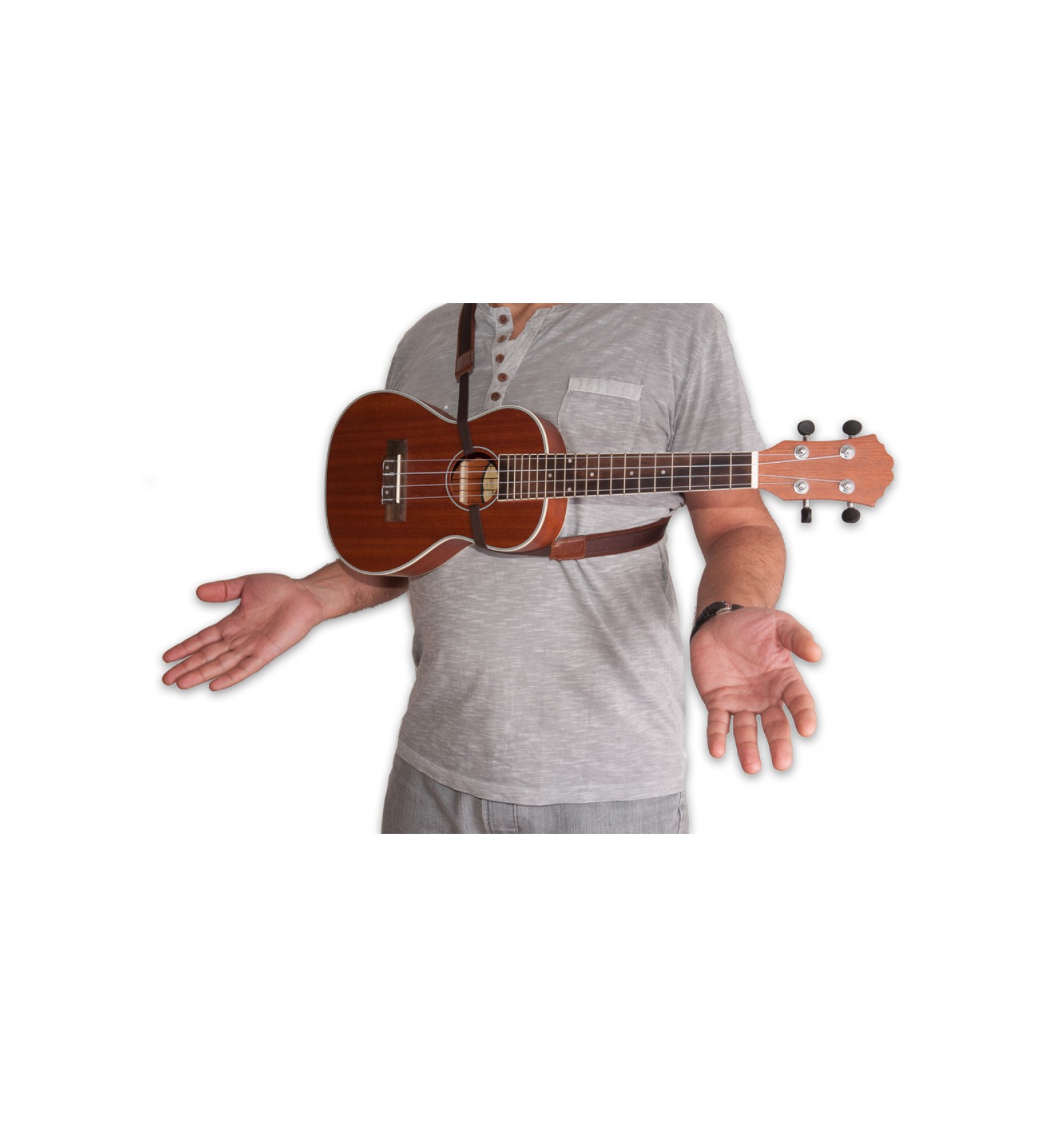 Courroie pour ukulélés avec 2 crochets ce qui permet de lacher l'instrument.